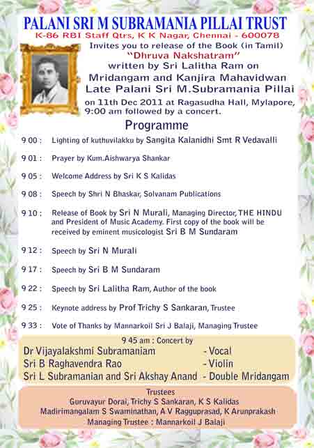 ஸ்ருதி பத்திரிகையின் பழைய இதழ்களைப் படிப்பது எனக்குப் மிகவும் பிடித்த பொழுது போக்கு. ஒரு முறை 1987-ல் வந்த ஸ்ருதி இதழ்களைப் புரட்டிக் கொண்டிருந்த போது, மிருதங்க வித்வான் தஞ்சாவூர் உபேந்திரன் எழுதியிருந்த கடிதம் கண்ணில் பட்டது. “இடது கைப்பழக்கம் உள்ள ஒவ்வொரு மிருதங்க வித்வானும், ஒவ்வொரு வேளை சாப்பிடும் போது பழனி சுப்ரமணிய பிள்ளையை நன்றியுடன் நினைத்துக் கொள்ள வேண்டும்" என்று அவர் எழுதியிருந்தது மனதில் ஆழமாகப் பதிந்தது. அன்று விழுந்த முதல் விதை, காலப் போக்கில் பழனி சுப்ரமணிய பிள்ளையின் வாசிப்பைக் கேட்கக் கேட்க விருட்சமாய் வளர்ந்தது. இந்த நூலை எழுத ஆரம்பிக்கும் போது, இதை யாருக்காக எழுதுகிறேன் என்ற கேள்வி எழுந்தது. கர்நாடக இசையில் தேர்ச்சி உடையவர்களுக்காகவா? அல்லது பரிச்சயம் மட்டும் உள்ளவர்களுக்காகவா? அல்லது பரிச்சயமே இல்லாமல், பழனி சுப்ரமணிய பிள்ளையின் பெயரைக் கேள்வியே பட்டிருக்காதவர்களுக்காகவா? இந்தக் கேள்விக்கு பதில் காண்பது சுலபமாக அமையவில்லை. ஒருவருக்காக எழுதி மற்றவரை விடுவதற்கு மனம் ஒப்பவில்லை. எல்லோருக்குமாக எழுதுவது என்பதோ இயலாத காரியம் என்ற போதும் அதைச் செய்யவே விரும்பினேன். இதன் விளைவாக இந் நூலின் வெவ்வேறு பகுதிகள் வெவ்வேறு விதங்களில் அமைந்திருக்கின்றன. குறிப்பாக, பழனி சுப்ரமணிய பிள்ளையின் வாசிப்பை நன்கு உணர்ந்தவருக்கு, கற்பனையாய்க் காட்சி விரித்து கதை போல எழுதப்பட்டிருக்கும் பகுதிகள் எரிச்சலூட்டக் கூடும். “என்னவோ நேரில் இருந்து பார்த்தா மாதிரி எழுதியிருக்கான்" என்று இளக்காரப் பார்வை வீசக் கூடும் என்பதை நன்கு உணர்ந்திருக்கிறேன். இந்த நூலில் கற்பனைகளைக் கலந்து நான் எழுதியிருக்கும் பகுதிகளில் பெரும்பாலானவை சொல்வனம் இணைய இதழில் தனிக் கட்டுரைகளாக வெளியாகியுள்ளவை. அவை வெளியான போது பெற்ற வரவேற்பே என்னை அந்தப் பகுதிகளை மாற்றாமலேயே புத்தகத்தில் சேர்த்துக்கொள்ளத் தூண்டின. பழனி சுப்ரமணிய பிள்ளையின் பங்களிப்பை முழுமையாக உணர அவருடைய தனிப்பட்ட வாழ்க்கையும் வாசிப்பும் மட்டும் போதாது, அவர் வாசித்த வாத்யம்; அதன் வரலாறு; அவருக்கு முன்னால் இருந்த நிலை; அவர் வாசிப்பை பாதித்தவர்கள்; அவர் சம காலத்தினர் ஆகியவற்றை வைத்துப் பார்க்கும் போதுதான் முழுமையான பார்வை கிடைக்கும். இவற்றை எல்லாம் இந்த நூல் முழுமையாகப் பதிவு செய்திருக்கிறது என்று சொல்ல முடியாது. மேலே குறிப்பிட்ட அனைத்திலும் ஒரு பறவைப் பார்வையை அளிக்கவே முயன்றிருக்கிறேன். இந்த நூலுக்கான அடித்தளமாக, பழனியுடன் நேரில் பழகியர்களின் நேர்காணல்களே அமைந்துள்ளன. நேர்காணல்களை என்னால் இயன்றவரை நானே எடுத்தேன் என்றாலும் கணிசமான 