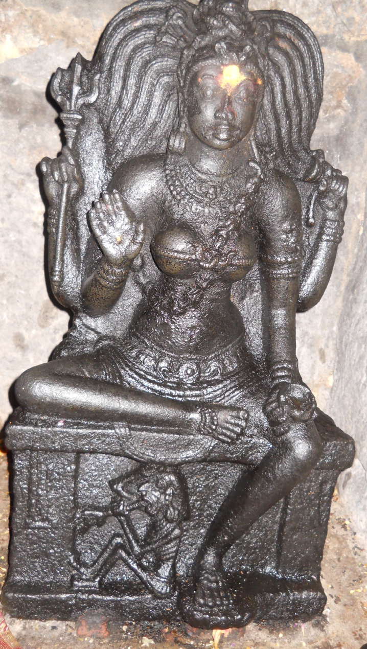 இந்நான்கு சிற்பங்களில் வாகனங்களாக இடம்பெற்றுள்ள பேய், வல்லூறு, நரி ஆகியவை மட்டுமின்றி, முப்புரிநூல், குழைகள், கைகளிலிருக்கும் கபாலவோடு மற்றும் தலையலங்கார ஆபரணங்கள் அனைத்துமே இடுகாட்டுடன் தொடர்புடையவையாய் இருக்கின்றன. 'இறைவனாடும் காடு அணங்காடும் காடு' என்றும் பேயொன்று தன் பிள்ளைக்குக் காளியென்று பெயரிட்டதையும் குறிக்கும் காரைக்காலம்மையின் மூத்த திருப்பதிகத்துடன் இவற்றை இணைத்துப் பார்க்க முடிகிறது. மேலே குறிப்பிட்ட தேவி மகாத்மியமும் 27வது அடியில் நரியை வாகனமாகக் கொண்டிருந்ததைக் குறிக்கிறது. 23வது அடியில் சாமுண்டி தோன்றும்போது ஆயிரம் நரிகள் ஒன்றாக ஊளையிடும் சத்தத்துடன் தோன்றியதாகக் குறிப்பது அப்பர் பெருமானின் ஐந்தாம் திருமுறையின் 230வது பதிகத்தில் வரும் 'கத்துங் காளி' என்னும் தொடருடன் இணைத்துப் பார்க்கத்தக்கது. இந்நான்கனுள் காலத்தால் மிகவும் பிற்பட்டதான பேளூர் சென்னகேசவர் கோயில் சாமுண்டியைத் தவிர்த்துவிட்டு மீதமுள்ள மூன்று சாமுண்டிகளுக்குள் காலநிரலாக ஏற்பட்ட மாற்றத்தைக் கவனித்தால், ஆயுதங்களிலோ கழுத்தணிகளிலோ குறிப்பிடத்தக்க மாற்றம் எதையும் காணமுடியவில்லை எனினும், முப்புரிநூலிலும் குழைகளிலும் சிறிது வேறுபாட்டைக் காணமுடிகிறது. முப்புரிநூலில் மண்டையோடுகள் அல்லது மனிதத்தலைகள் கோக்கப்பட்டிருப்பதும் செவிகளில் மனிதக்குழை அல்லது பிணக்குழையைக் கொண்டிருப்பதும் பிற்காலப் பல்லவர் மற்றும் முற்காலச் சோழர் காலத்தில் ஏற்பட்ட மாற்றம் எனலாம். அபராஜிதரும் ஆதித்தரும் ஒரே காலகட்டத்தைச் சேர்ந்தவர்கள் எனினும், மனிதத்தலைகளும் மண்டையோடுகளும் இதே காலகட்டத்தைச் சேர்ந்த பழுவேட்டரையர்கள் மற்றும் முத்தரையர்கள் காலச் சாமுண்டிகளிலும் இடம்பெற்றிருக்கிறதா என்பதும் சங்க இலக்கியங்கள், காப்பியங்கள் மற்றும் திருமுறைகளில் குறிக்கப்பட்டிருக்கிறதா என்பதும் விரிவான ஆய்வுக்குரியவை. (ஆய்வு வளரும்) this is txt file |