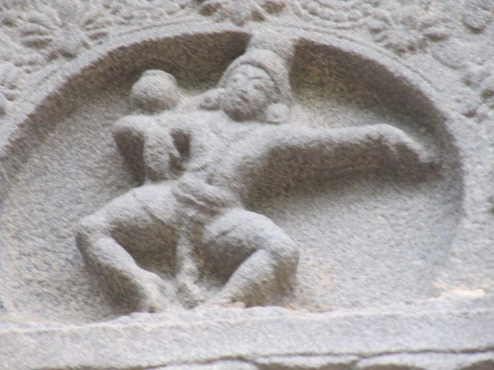 அன்புள்ள வாருணி, 29. 7. 1990 அன்று நிகழ்ந்த திருப்புத்தூர்ப் பயணத்தின்போது பிரான்மலையை அடுத்து பெரிச்சியூர் சென்றோம். பெரிச்சியூர் திருப்புத்தூரிலிருந்து 10 கி. மீ. தொலைவில் உள்ள சிற்றூராகும். அங்கு மாறுபட்ட பைரவர் சிற்பம் இருப்பதாகத் திரு. என். சேதுராமன் வழிக் கேள்விப்பட்டிருந் தோம். அவ்வூரிலுள்ள சுகந்தவனேசுவரர் கோயில் இறைவன் திருத்தி யூர் முட்டத்துத் திருமட்டுக்கரை நாயனார் என்று கல்வெட்டு களில் அழைக்கப்படுகிறார். பிற்பாண்டியர் காலத்தில் செழிப்பாக இருந்த அத்திருக்கோயில் நாங்கள் சென்றிருந்தபோது மிகவும் சிதைந்த நிலையில் இருந்தது. கல்வெட்டுகள் சேத்ரபாலதேவர் என்றழைக்கும் திருமேனி கோயில் வளாகத்தின் வடகிழக்குத் திருமுன்னில் இருந்தது. வழக்கமான சுடர்முடி அமைப்பிலிருந்து மாறுபட்டு சிரஸ்திரக முடியமைப்புடன் நின்றகோலத்தில் காட்சிதந்த அந்த நிர்வாண அழகருக்கு எட்டுத் திருக்கைகள். வல முன் கையில் கத்தி. பின் கைகளில் பாம்பு, முத்தலைஈட்டி. நான்காவது கைக்கருவி சிதைந் திருந்தது. இட முன் கை தலையோடு கொள்ள, இரண்டாம் கை அறுபட்ட தலையொன்றை முடிக்கற்றையைப் பிடித்துத் தூக்கிய நிலையில் காட்சிதந்தது. பின்கைகளில் உடுக்கை, பிணமொன்றைக் குத்தி ஏந்திய நிலையில் கங்காளத் தண்டு. கழுத்தில் மாலைகளுடன் மிக அரிதாகவே சிவபெருமானின் அணிகலனாகக் காட்சிதரும் பதிகப் புகழ் பன்றிக் கொம்பு இருந்தமை வியப்பளித்தது. இடத்தோளிலிருந்து முழங்கால்கள்வரை தொங்கி, வலத்தொடையின் வழிப் பின்னால் மறையும் தலைமாலை புதுமையான அமைப்பில் இருந்தது. இருதொடைகளையும் பின்னி வளைத்த நிலையில் பாம்பு அமைய, செவிகளில் குண்டலங்கள். தலைக்குப்பின் ஒளிவட்டம். சேத்ரபாலரைச் சுற்றி அமைந்திருக்கும் திருவாசியின் வலக்கீழ்ப் பகுதியில் இருந்த மூன்று ஆண் வடிவங்களுள் இரண்டு அமர்நிலையிலும் ஒன்று ஆடற்கோலத்திலும் அமைந்திருந்தன. ஆடலரின் வலக்கை பதாகத்திலும் இடக்கை வேழமுத்திரையிலும் அமைய, இடுப்புக்குக் கீழ்ப்பட்டபகுதி அமர்ந்துள்ள இசைக் கலைஞர்களின் பின் மறைந்திருந்தது. கலைஞர்களுள் ஒருவர் தாளம் இசைக்க, மற்றவர் குடமுழவு வாசிக்கிறார். திருவாசியின் இடப்புறம் நாய் ஒன்றுடன் உள்ள ஆடவரின் வலக்கை அதன் முதுகைத் தடவிடும் மெய்ப்பாட்டில் அமைய, இறைவனது இடக்கையிலிருந்து தொங்கும் தலையின் தசைப்பகுதியைச் சுவைக்குமாறு நாய் தாவிய நிலையில் காட்சிதருகிறது. அதன் முன், பாதங்களின் மேல் முழவொன்றை வைத்து முழக்கி மகிழ்பவராய் அமர்நிலையில் ஒருவர் காட்டப்பட்டுள்ளார். என்னுடைய கோயில் வாழ்க்கை அனுபவத்தில் இப்படியொரு சேத்ரபாலர் திருமேனியை நான் எங்கும் கண்டதில்லை. சிற்பங்களின் முக அ