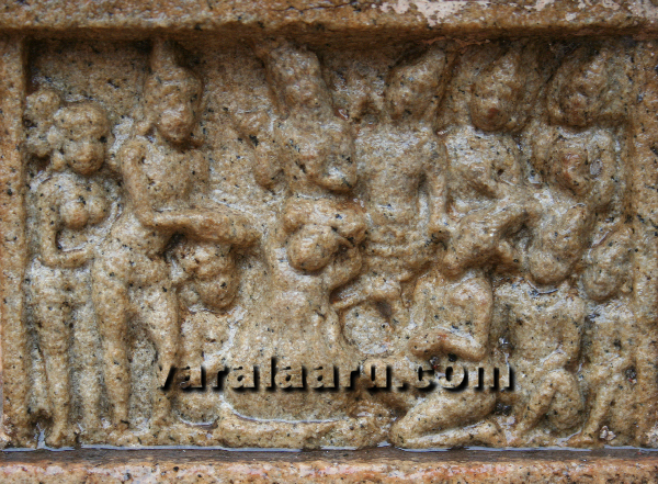 Ramayana traditions in Tamil Nadu can be traced back to early Tamil literatures of the Sangam canto [300 BC – 250 AD] such as Agananuru and Purananuru. These compilations quote indigenous events and sequences [Agananuru No. 70, Purananuru No. 378] not found in the Sanskrit version of the epic by Sage Valmiki, suggesting early percolation of Ramayana ethnicities in peninsular India through folklore and other oral/cultural traditions. Literatures of the post-Sangam period [250 – 400 AD] contain increasing references to Ramayana’s events and characters. A propensity to identify Rama as a manifestation [Avatara] of Lord Vishnu, thereby elevating his status to Godhead - is observed in this period. The Silappathikaram of Ilangovadigal, for example, places Rama in line with other incarnations of Vishnu like Krishna and Narasimha [Pukar Kandam, Sec.9 Lines 9-13]. The concept of Ramavatara is further enriched and elaborated in the Tamil devotional couplets of the Vaishnavite Alwars, in the Pallava-Pandiya period [580 – 894 AD]. Kamba Ramayanam, the earliest extant version of Ramayana in Tamil by poet Kamban [12th Century AD], was titled Ramavatharam – following this tradition. Epigraphic material retrieved from copper plates and inscriptions of the Pallava-Pandiya period attest the continuing influence of Ramayana in Tamil society. For example, the Kasakkudi Plates of Pallava emperor Nandivarman-II eulogizes his predecessor Narasimhavarman-I as the “victor who undermined even the great glory of the valor of Rama who triumphed over Lanka” [Sivaramamurthi, C. 1983:184]. Endowments were provided by rulers for the recitation of Ramayana in public. However, Ramayana themes were not widely adopted for sculptural representations in temples. For the first time in the art history of Tamil Nadu, Ramayana depictions - as a series of narrative miniatures, are observed in the early Chola temples of early 10th Century AD in the Cauvery valley. These are: This scope of this series is to understand the sociological, cultural and artistic influences of Ramayana in the Tamil society during Chola times - by comparing, contrasting and comprehending select miniature reliefs from these temples. The Sacrifice of King Dasaratha - Kumbakonam The great sacrifice of King Dasaratha, which sets the story of Rama in motion, is portrayed in few temples like Kumbakonam and Pullamangai. ![]() At Kumbakonam, the sacrificial Alter [Homakunda] is shown approximately in the middle of the relief and a celestial Goblin [Bhutagana] is seen emerging from the top of the fire. He is holding an object of veneration on top of his head. This object, which seems to be wrapped up in a cloth, is obviously not a vessel containing Payasa as in Valmiki but most probably the Pinda of Kamban’s Ramavatharam. King Dasaratha, standing to the right of the Alter, is keenly extending his hands to receive the celestial gift from the Gods. His slightly bent posture reflects his anxiety and urge to receive the gift. He is wearing a Makuda and Patra Kundala and is draped in a silk loincloth. His chief Queen [Pattamahishi] Kausalya is standing next to him, witnessing the event. Sage Rishyashrunga (the Antelope headed one / Kalaikkottu Munivan in Tamil), who is the chief priest of the sacrifice [Yagna], is shown to the left of alter. His Gradudasana posture signifies the spirit of offering. Holding a sacrificial ladle [Sruk /Sruva] in right hand, he is offering ghee to the fire. Two of his attendants are seated behind him and a third one is shown on the other side of the Alter. Four characters are shown standing in the background. Two of them are Sages [Rishis] and the other two are celestials [Devas]. The Rishi pair is involved in a conversation. The right hand of first Sage is held in Vismaya posture – in praise of the sacrifice. The other Sage, listening to his companion with due attention – is engaged in playing a stringed music instrument. The celestials witnessing the sacrifice are Surya and Chandra – as suggested by the nimbus behind their heads. These four characters, taken together, could represent the celestial gathering witnessing the sacrifice. The Sacrifice of King Dasaratha - Pullamangai At Pullamangai, the position of the King is shifted to the left of the Alter. Here, he has already received the celestial gift from the Goblin who is seen in the midst of the fire. Once again, the object being exchanged cannot be identified with certainty but it doesn’t seem to be a vessel and most likely to be the Pinda – as seen earlier at Kumbakonam. ![]() Two male figures are seen behind the King; the first figure is holding a flower in his left hand and is looking at the second one. The second figure is holding a sword, which is resting on his left shoulder. These two figures represent attendants of the King. Queen Kausalya is conspicuous by her absence. The priests who are conducting the sacrifice are located to the right of the Alter. The chief priest is in Garudasana posture and he is not Sage Rishyashrunga; the second priest is a supportive figure. One sage and three celestials are seen in the background, witnessing the sacrifice. One of them, located right above the Alter, is holding an object in his right hand - the identity and purpose of which is unclear. Variations in treatment Significant variations in treatment are observed between the two Chola Ramayana panels of comparable age, depicting the same theme, viz. the Sacrifice of Dasaratha. The representation at Kumbakonam includes one Goblin, two performers of the Sacrifice (the King and the Queen), four conductors (Priest and his companions) and four celestial witnesses. Altogether there are 11 characters and all are male figures except one. At Pullamangai, the portrayal includes one Goblin, one performer (the King), two of his attendants, two conductors and four celestial witnesses. There are 10 characters in total and all are male figures. The absence of Kausalya and Rish