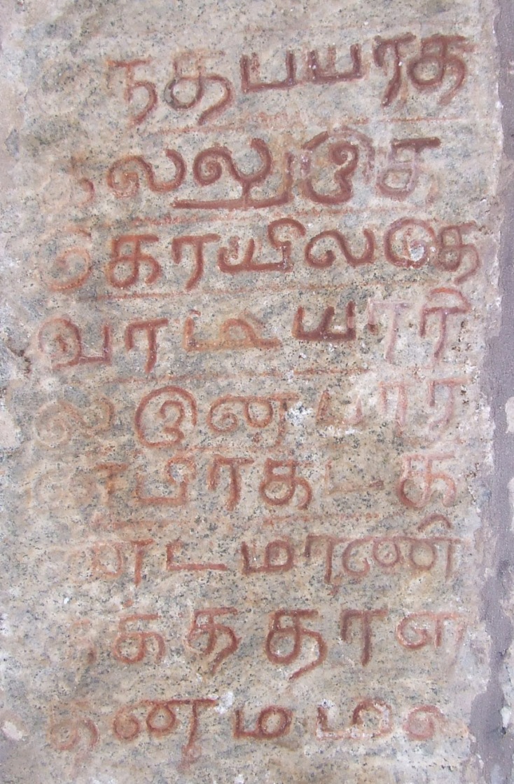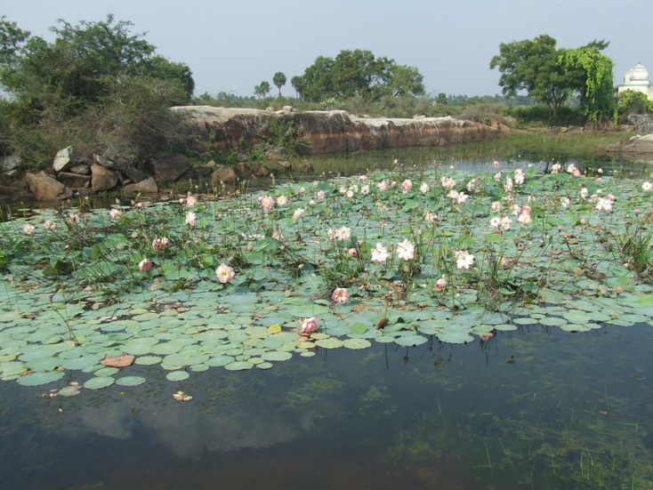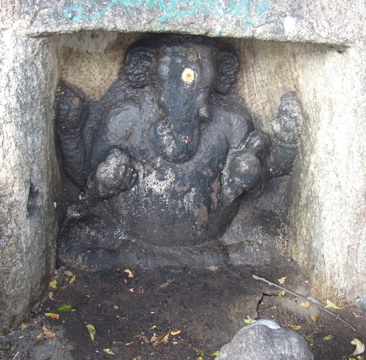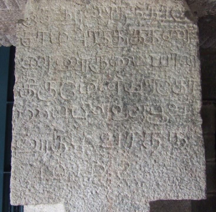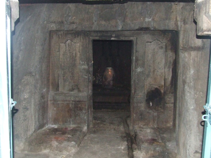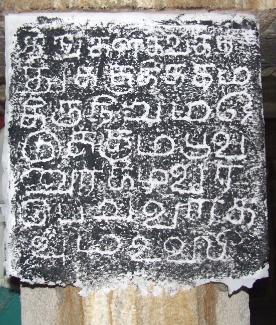 Poovalaikkudi lies in Pudukkottai-Ponnamaravathi route, nearly one and half kilometers from Vaiyapuri. The site is inaccessible as it lies in the midst of the barren land shrouded by thorny bushes and shrubs. One has to ride through the bushes or to walk on the one way track to reach the site.1 Thanks to ASI for laying a mud track and fencing the monument. Few low level hillocks and boulders are scattered around this uninhabited area and the rock cut shrine is scooped on a centrally lying hillock on its eastern precipice.2 It is the nucleus around which various structural shrines mushroomed in the later period. ![]() THE TEMPLE COMPLEX The temple complex consists of a rock-cut shrine with structural mandapas in the front, and three other structural shrines surrounding it. To its south lies the shrine for Goddess Sundaravalli and to its north on the summit of the rock boulder is the shrine of Subrahmanya facing east and on the north east lie the shrine of Bhairava facing south. A bas-relief sculpture of Ganesa is cut on the southern precipice of the central hillock. The rock-cut water tank found on the west and the lotus pond on the north add serenity to the place. The main temple consists of a rock cut shrine, a mukhamandapa, a mahamandapa, an open pillared mandapa and a nandhi mandapa all arranged consecutively facing east. Above the rock cut shrine on the hillock a newly constructed two tier structure with griva and shikara are seen. The temple is rich in inscriptions dating from the 8th century A.D. to 17th century A.D. The inscriptions mention the deity as Poovalaikkudi Thevar and Poovalaikkudi Udaya Nayanar, but at present the deity is known as Pushpavaneswarar. The earliest known inscription of the temple complex is the one found at the lintel of the rock cut shrine entrance, gives us the information that it was scooped by Bhuti Kalari alias Amarundri Muttaraiya.3 ![]() INSCRIPTION IN THE MANDAPA ROOF The open pillared mandapa has in the front four rows of pillars with three in each row. The pillars are decorated as three squares with kattu in the middle. Idaikattu, nagabandhas are the other additional decorative features of the pillars. The potikas are angular with vettu. Stone slabs are arranged to form the roof of the mandapa and finished have cement plastering on the top. Some of the squares of the pillars are ornamented with miniatures and medallions. Inscriptions belonging to 16th century AD are found on some of the roof slabs, pillars, and potikas.4 In front of the open pillared mandapa is the nandi placed in a small mandapa facing the central shrine and a balitala. ![]() A MINIATURE The front mandapa leads to the inner mandapas which consists of a maha mandapa and a mukha mandapa. The entrance to the maha mandapa is seen both on the south and the east. The inscription on the lintel of the eastern entrance speaks about the donor.5 Both the mandapas have a common wall structure with padabandha adhishthana, wall sectioned by brahmakanta pilasters. Vettu potikas above the pilasters hold the prastara. The roof is covered with stone slabs. The tala ends with bhumidesa. ![]() INSCRIPTION IN THE PILLAR Inside, the pillars of the mandapas are with the components of three squares and kattu in between. The potikas are vettu which extend it limbs to bear the prastara, stone slabs are arranged to cover the roof of the mandapa. The inscriptions on pillars, roof, potikas attests its existence in the 14th century A.D.6 On the northern side of the mandapa, the mother rock extends inside and forming part of the wall for few yards. The extended portion is sculpted as an pitha and formed as a platform with iron grill enclosure above it. On the southwestern edge of the platform a small rock cut linga is formed at its foot. On the north-west corner of the maha mandapa another platform is formed with closed provision where a small Ganesa is placed inside. A sculpture of Ganesa is also seen near the entrance to the mukha mandapa. Adjoining the third row of pillars a structural wall sections the two mandapas where in its center the entrance to the mukha mandapa is formed. The jambs and the lintel of the entrance are decorated as padma petals and also possess inscription of the donor.7 Inside the mukha mandapa two pillars are seen. The roof slabs of the mandapa are rested on the mother rock above the kapota at a height of .58mts. ![]() THE ROCK-CUT SHRINE The rock cut cave is a shrine cell with extension of mother rock as roof, floor and side walls in its front. Due to the sloppy and inclined nature of the mother rock the front extension is tapering upwards. The floor in front of the sanctum is .11mts above the mandapa floor and in its center the floor is cut as a pathway to the sanctum. The floor extension to the north of the pathway is .89mts in east west and .59mts in north south direction, whereas the same on the south is .75mts in east west and .74mts in north south directions. The side walls in front of the shrine cell extends 1.43mts and .74mts in the bottommost and .62mts and .12mts in the topmost in the north and south respectively. The anterior wall of the sanctum is 2.25mts width, sectioned by four pilasters. An aperture is formed between the middle pilasters to a height of 1.50mts and to a width of .75mts forming the entrance to the sanctum. The space between the pilasters on either side of the sanctum is formed as niches. An attempt of adhisthana is seen on either side of the sanctum front wall. Jagati is formed to a height of .43mts and followed by octagonal kumuda and kampa. The pilasters that raise above the kampa are square, kattu, square and the kattu is long comparing the squares. The angular potikas that rest above the pilasters are single limbed extending inside forming a vaulted roof for the niches. Such narrow vaulted niche is seen in Malayakkoil sanctum wall. Two tarangas are shown at the base and two in the angular section, the intersecting wave is extended as a contour scro