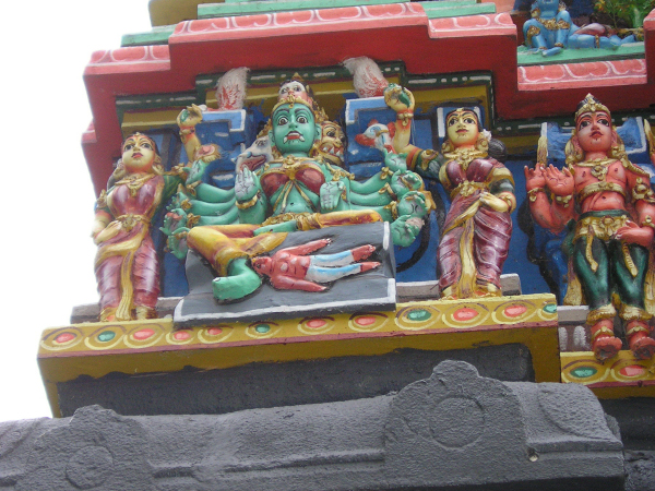 ![]() மிக அரிய சிற்பமான சக்தி சதுஷ்கா இன்று நாகரீக வண்ணப்பூச்சால் விகாரப்படுத்தப்பட்டுள்ளது பன்றி, நரசிங்கம், குதிரை என்ற மூன்று விலங்குகளின் தலைகளையும் அவற்றின் அம்சங்களையும் கொண்டு ஒரே உடலுடன் விளங்கிய மூன்று அரக்கர்கள் தங்களை யாராலும் அழிக்க முடியாதென்ற ஆணவத்துடன் அடாத செயல்கள் பலவாற்றிப் பெருந்துன்பம் இழைத்து வந்தனர். அவர்களை அழிக்க வேண்டுமானால் அப்படி அழிக்க வருபவரும் அவர்களைப் போலவே வடிவம் கொண்டிருக்க வேண்டும். இந்நிலையில்தான் அந்த அரக்கர்களின் அழிவுச் செயல்களைப் பொறுக்க மாட்டாத விஷ்ணு அவர்களைக் களையெடுக்க விரும்பி அவர்களைப் போலவே வடிவம் கொண்டு நான்கு முகங்களுடன் வைகுந்தராய் தோன்றினார். வைகுந்த வடிவத்தில் அமைதி நிறைந்த மனித முகம், பன்றி முகம், நரசிங்க முகம், குதிரை முகம் ஆகியன இடம்பெற்றன. இந்த வைகுந்த வடிவத்தினை முதன்முதலாய் பெற்றவர்களாகக் கல்வெட்டில் குறிக்கப்படும் போதர்கள், காஷ்மீர் - லடாக் - திபேத் பகுதிகளில் பெரும் செல்வாக்குடன் வாழ்ந்து அப்பகுதிகளில் தனித்ததோர் இடம் பெற்ற பௌத்தர்களேயாவர். இந்த வைகுந்தர் வழிபாடு காஷ்மீரத்து வைணவப் பண்பாட்டில் சிறப்பிடம் பெற்றிருந்தது. ஜம்மு, காஷ்மீர், அவந்திபூர் பகுதிகளிலுள்ள கோயில்களில் வைகுந்தர் வடிவங்கள் பல அடையாளம் காணப்பட்டுள்ளன. ஆக்க சக்தியின் திருத்தோற்றமாகக் கருதப்படும் இந்த வைகுந்தரின் மனித முகம் வாசுதேவரையும் நரசிங்கமுகம் சம்கர்ஷணரையும் பன்றி முகம் பிரத்யும்னரையும் குதிரை முகம் அநிருத்தரையும் குறிப்பதாக பாஞ்சராத்திரம் கூறுகிறது. ஆனால் கிடைத்திருக்கும் திருமேனிகள் பலவற்றிலும் குதிரை முகத்திற்குப் பதிலாக அரக்க முகம் காணப்படுவது குறிப்பிடத்தக்கது. நால்வியூகக் கொள்கையை மையமாகக் கொண்ட இந்த வைகுந்த சதுர்மூர்த்திகள் தத்தம் சக்தியருடன் ஆக்கத் தொழிலைச் செய்வதாகக் குறிப்பு. வைகுந்தச் சதுர்வேதிகளுக்குக் கிடைத்த வரவேற்பும் வழிபாடும் அவர்தம் சக்தியர்க்குக் கிடைத்ததாகத் தெரியவில்லை. அஹிர் புத்நயா சம்ஹிதை இந்நான்கு சக்திகளையும் அங்கீகரிக்கிறதே தவிர அவர்தம் தோற்ற விளக்கங்களைத் தரவில்லை. பாஞ்சராத்ர ஆகமங்களின் மிகப்பழமையான ஜயேக்கிய சம்ஹிதைதான் வைகுந்தரையும் அவரது தேவியான சக்தி சதுஷ்காவையும் விரிவாக அறிமுகப்படுத்துகிறது. லட்சுமி, கீர்த்தி, ஜெயா, மாயா எனும் நான்கு பெண் தெய்வங்களின் ஒருங்கிணைந்த வடிவமாக சக்தி சதுஷ்கா கருதப்படுகிறார். கிழக்கில் அமையும் மனித முகம் விஷ்ணுவிற்குரிய சக்தி லட்சுமி. தெற்கிலமையும் நரசிம்மருக்குரிய சக்தி கீர்த்தி. மேற்கில் அமையும் குதிரை முக ஹயக்கிரீவருக்கு ஜெயா. வடக்கில் மாயா பன்