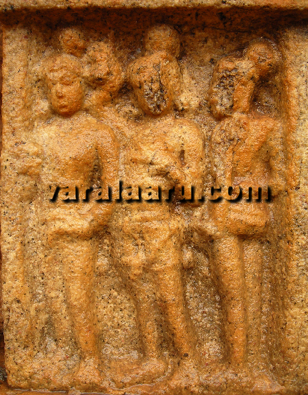 On the outskirts of Mithila, Rama cites a dilapidated hermitage. Upon enquiry, he learns that it was once the abode of Sage Gautama and his unfortunate wife Ahalya – who fell for the deceit of Indra and was eventually petrified into a Stone. At the touch of Rama’s feet, Ahalya curse is relieved and she retains her human form. These events are portrayed at Kumbakonam [Panels 10 & 11] and Pullamangai [Panels 14 & 15]. Kumbakonam Panel No.10 – Viswamitra’s Sacrifice The sacrificial alter is seen in the middle of the panel. A young priest is sitting to the left of alter and is involved in raising fire and conducting the Yagna. He is being assisted by another person standing right behind him. ![]() Sage Viswamitra, who is also standing to the left of alter is seen in conversation with Rama. His raised right hand showing Vismaya Mudra suggests that he is stressing the importance and significance of the sacrifice in progress. Rama, standing to the right of alter with Lakshmana, is listening to Sage in full attention. His head is slightly raised so that he is in eye to eye contact with the Sage. It is noteworthy that in Pullamangai, the attack of Mareecha happens when the sacrifice is in progress [Panel 12] whereas at Kumbakonam the sacrifice seems to have progressed only after the daemons were driven away. Also, the injury and fall of Rama at Pullamangai [Panel 13] is not seen at Kumbakonam. Pullamangai Panel No.14 – Approach to Gautama’s Hermitage The theme of this panel is unique and is only available at Pullamangai. The event portrayed here is derived by connecting it with the next Panel [No. 15]. Since these two panels are located on either side of the northern Devakoshta [housing a standing Brahma], we may surmise that the events portrayed are related to each other. ![]() Three figures are seen in the panel. All of them are looking towards the right. The first figure is calm and composed, gesturing Kataka mudra in right hand and holding his left palm on his thighs in Katiyavalambita posture. This could be Lakshmana. The figure in the middle is talking. His left hand gesturing Ala Padma suggests enquiry and question. It is obvious that he is curiously enquiring about something he is seeing in front of his eyes. His left hand is decoratively holding a bow. This could be Rama. The third figure standing behind Rama is turned in a slightly different direction. This could be Viswamitra. Together, this panel might represent the trio witnessing the plight of Gautama’s hermitage and Rama enquiring about the same to Viswamitra. Pullamangai Panel No.15 – Ahalya Relieved The panel shows Rama placing his right foot on the stone. His dwibhanga posture is very peculiar. It suggests humility and kindness on the part of Rama in relieving the curse of a respected Rishi Patni. Lakshmana’s bent head compensates that of Rama. ![]() Ahalya, who is seen to the left of the spectator, is still in the process of being relieved – part of her body is still a stone block. She is rising with clasped hands showing Anjali Mudra, full of gratitude and compassion. It is noteworthy that Ahalya being cursed and petrified into a stone is peculiar to southern recensions of Ramayana. In the north Indian versions, Ahalya is cursed to be invisible without food or hunger for a thousand years! Kambar follows the southern tradition. Kumbakonam Panel No.11 – Ahalya Relieved While the Pullamangai panel shows Ahalya in the process of being relieved, Kumbakonam captures the moment after the curse is fully lifted. The bottom portion of the panel is covered with concrete – so it is difficult to confirm if Ahalya was cursed into a stone or otherwise. ![]() Rama is standing in the middle of the panel and looking at the relieved Ahalya. His right hand is holding the bow and the left hand is held in thighs in Katiyavalambita. His posture exhibits confidence and composure – but the consideration for Ahalya [Karuna] so well expressed at Pullamangai is missing. The figure standing behind Rama is worn out; this could be Sage Viswamitra. Ahalya is seen at the extreme right of the panel. She is standing with clasped hands in Anjali hasta. Her posture is rigid; the natural happiness and gratitude seen at Pullamangai is missing. The male figure is standing in between Rama and Ahalya and attentively listening to Sage Viswamitra is Lakshmana.this is txt file |