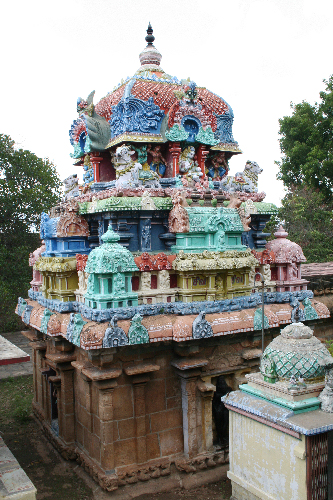 கோபுர வாயிலுள் நுழைந்த தும் திறந்த வெளியில் கோயிலின் வடபுறத்திலுள்ள பாழடைந்த இரண்டு கட்டிடங்கள் கருத்தைக் கவர்கின்றன. அருகே சென்று பார்த்தால் ஒன்று அண்மைக்காலக் கட்டிடம். மற்றொன்று மண்டபம். இரண்டுமே ஒரு காலத்தில் பள்ளிக்கூட வகுப்புக்களாய் பயன்பட்டிருக்கின்றன(9). இந்த இரண்டு கட்டிடங்களுமே அழிவின் அரவணைப்பில் உள்ளன. என்ன காரணத்தினாலோ குடமுழுக்கு நிகழ்த்தியவர்கள்கூட இதைக் கண்டுகொள்ளாமல் விட்டிருக்கின்றனர். இந்த மண்டபத்தின் சுவர்களில் சிதறிய கல்வெட்டுத் துணுக்குகள் காணப்படுகின்றன. இதுவரை படியெடுக்கப்படாத இக்கல்வெட்டுத் துணுக்குகளை டாக்டர் மா. இராசமாணிக்கனார் வரலாற்றாய்வு மையம் படியெடுத்துப் படித்த தில் இவை இரண்டு கல்வெட்டுக்குரிய துணுக்குகள் என்பதும் கோயிலுக்களிக்கப்பட்ட நிலக்கொடைகளைக் குறிப்பன என்பதும் தெளிவாயின(10). கோயிலின் வெளித்திருச்சுற்று தென்ன மரங்களும் முட்செடிகளுமாய் அமைந்துள்ளது. செங்கல்லால் ஆன வெளிமதிலுக்கும் கருங்கல்லால் ஆன உள்மதிலுக்கும் இடைப்பட்ட இப்பகுதியில் எவ்வளவோ செடிகொடிகளைப் பயிரிட்டு வளர்க்கலாம். கோயிலுக்கும் பயன்படும். ஊருக்கும் உணவாகும். இரண்டாம் கோபுர வாயில் எளிய அமைப்புக்களுடையது. இதன் இருபுறக் கருங்கல் நிலைகளிலும் கல்வெட்டுக்கள் உள்ளன. இவற்றுள் இடப்புற நிலை சேதன்குடியைச் சேர்ந்த ஆழ்வார்கள் ராமன் இராஜராஜ விழுப்பரையன் என்பரவரால் தரப்பட்டுள்ளது(11). வலப்புற நிலையிலுள்ள கல்வெட்டு சிதைந்துள்ளதால் பெயரை அறியக்கூடவில்லை (12). கோபுர உள் அமைப்பிலுள்ள திணைணை முகப்பிலும் வட தென் சுவர்களிலுமாய் இரண்டு கல்வெட்டுக்கள் உள்ளன. இவற்றுள் ஒன்று திரிபுவனச் சக்ரவர்த்தி இராஜராஜ தேவனின் பதினான்காம் ஆட்சியாண்டில் வெட்டப்பட்டுள்ளது. இருபத் வேலி நிலம் இறையிலியாக்கப்பட்டு இராசகம்பீர நல்லூரென்ற பெயருடன் புதிய ஊராக உருவாக்கப்பட்டு திருச்செந்துறை இறைவனின் படையல்களுக்காய்த் தரப்பட்ட செய்தியை இக்கல்வெட்டு தருகிறது (13). மற்றொரு கல்வெட்டு கோனேரி தேவ மகாராயர் இக்கோயில் ஆதிசண்டேசுவர தேவகன்மிகளுக்கு அளித்த சர்வமான்ய பட்டயம் பற்றிப் பேசுகிறது(14). ![]() திருச்செந்துறை விமானம் முன் மண்டபம் - அம்மன் திருமுன் இரண்டாம் கோபுர வாயில் வழியே உள் நுழைந்த தும் முன்மண்டபம் பார்வையில் படமாகின்றது. தூண்கள் நிறைந்த இம்மண்டபத்தின் வடபுறத்தில் தெற்குப் பார்த்த அம்மன் திருமுன் அமைந்துள்ளது. உள்மண்டபமும் கருவறையுமாய்க் காணப்படும் இத்திருமுன்னில் இறைவி மானேந்தியவல்லி என்ற திருப்பெயரில் நான்கு திருக்கரங்களுடன் அருளாச்சி செய்கிறார். வட முன் கை காக்கும் குறிப்பு காட்ட, இட முன் க