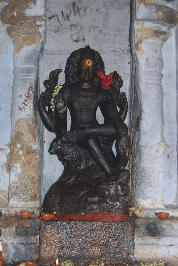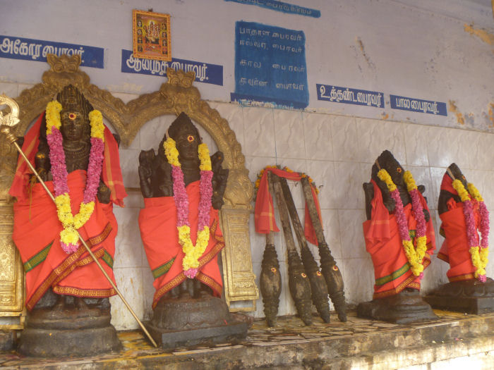 இத்தலம் வழிபாட்டுச் சிறப்புடனும் வரலாற்றுச் சிறப்புடனும் விளங்குகிறது. சப்தவிடங்கத்தலம்: சிவபெருமான் விடங்கர் வடிவமாக (தியாகராஜராக) ஏழு திருக்கோயில்களில் சிறப்பாக வழிபடப்பெறுகின்றார். இவற்றை 'சப்தவிடங்கத்தலங்கள்' எனக்கூறுவர். இத்தலங்களில் இறைவன் ஆடிய நடனங்களும் சிறப்பானவை. திருவாய்மூர் - நீலவிடங்கர் - கமலநடனம் திருநள்ளாறு - நாகவிடங்கர் - உன்மத்தநடனம் திருக்கோளிலி - அவனிவிடங்கர் - பிருங்கநடனம் திருவாரூர் - வீதிவிடங்கர் - அஜபாநடனம் நாகப்பட்டினம் - சுந்தரவிடங்கர் - தரங்கநடனம் திருக்காரவாசல் - ஆதிவிடங்கர் - குக்குடநடனம் திருமறைக்காடு - புவனிவிடங்கர் - அம்சபாதநடனம் திருவாய்மூர் திருத்தலத்தில் இறைவன் நீலவிடங்கராக எழுந்தருளி, கமலநடனம் புரிந்து அருள் செய்கிறார். அமைவிடம்: நாகப்பட்டினம் - திருத்துறைப்பூண்டி பேருந்து சாலையில் எட்டுக்குடிக்குப் பிரியும் சாலையில் சென்றால் இத்தலத்தினை அடையலாம். இங்கு கோயில் கொண்டு விளங்கும் இறைவன் 'வாய்மூர் நாதர்' என்றும், அம்மன் 'பாலினும் நன்மொழியாள்' என்ற பெயருடனும் போற்றி அழைக்கப்படுகின்றனர். ![]() திருவாய்மூர் திருக்கோயில் கோபுரம் திருக்கோயில் அமைப்பு: திருக்கோயில் கிழக்கு நோக்கி மூன்று நிலைக் கோபுரத்துடன் காட்சி அளிக்கிறது. கோயில் முன்பாகத் திருக்குளமும் அதன் கரையில் திருக்குள வினாயகர் சன்னிதியும் அமைந்துள்ளது. கோபுரத்திற்கு முன்னர் நந்தியும், கொடிமரமும், வினாயகப் பெருமானுடன் காட்சிதரும் பலிபீடத்தையும் வணங்கி உள்ளே செல்லலாம். திருச்சுற்றில் வினாயகர், வள்ளி, தெய்வானை உடனாகிய சுப்ரமணியசுவாமி சன்னிதி, மகாலட்சுமி சன்னிதி, அஷ்ட(எட்டு) பைரவர் சன்னிதி ஆகியவை அமைந்துள்ளன. ![]() நடமிடும் நிலையில் விநாயகர். இரு புறத்தும் அடியவர்கள் ![]() கோயிலில் அமைந்துள்ள அட்ட பைரவர் (எட்டு பைரவர்) சன்னிதி இக்கோயிலில் நவக்கிரகங்கள் ஒரே வரிசையில் அமைந்துள்ளதும் குறிப்பிடத்தக்கது. மேலும், இத்தலத்தில் இறைவனை வான்மீகி சித்தர் வழிபட்ட சிறப்பும் கூறப்படுகிறது. மூலவர் திருவாய்மூர் சன்னிதியின் தென்புறம் தியாகராஜர் சன்னிதியும், வடபுறம் திருமறைக்காடர் சன்னிதியும், அம்பாள் சன்னிதியும் அமைந்துள்ளன.(1) ![]() திருக்கோயிலில் அமைந்துள்ள பல்வேறு திருமுன்கள் ![]() தியாகராஜர் திருமுன் தோற்றம் ![]() இடபத்தின் மீது அமர்ந்த நிலையில் தட்சிணாமூர்த்தி திருநாவுக்கரசரும், திருஞானசம்பந்தரும் திருவாய்மூர் இறைவன் ஆடலைப் போற்றியது: திருநாவுக்கரசர் பெருமானும், திருஞானசம்பந்தப் பெருமானும் திருவாய்மூர் இறைவனையும் இறைவியையும் போற்றிப்பாடி அருள் பெற்ற சிறப்புடன் இத்தலம் விளங்குகிறது. திருமறைக்காட்டில் (வ