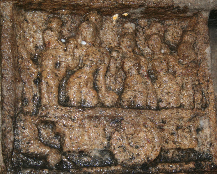 Rama’s confrontation with the enemies is followed by four panels at Pullamangai – all of which are located in the Vedipada of the Mukha Mandapa. This niche features the famous Durga, considered to be yet another masterpiece of the early Chola period. In recent times, this niche has been converted into a sub shrine with concrete walls, thereby disturbing the overall appeal of the entire Bhadra segment. Constant anointment with oil has also taken its toll on the Durga sculpture as well as Vedipada Ramayana panels. The four Ramayana panels have to be studied under all these constraints.