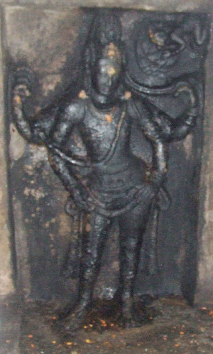 GANESA The Ganesa is huge, seen seated in cross legs on an elliptical pedestal formed above the southern niche floor.16 His back hands are in kataka and carrying sugarcane in the right and broken tusk in the left.17 Among the front hands the right is carrying motaka and the left hand is holding the knot of the idaikattu.18 His locks are arranged as karanda makuta.19 Head ornament, charapali, armlets, bangles are the other ornaments worn by him. The lower garment is draping upto his ankle with idaikattu above it and the yajnopavita is with four strands, worn in upavita fashion. His proboscis is left turned holding a motaka. ![]() GANGADHARA Gangadhara is standing on the floor of the northern niche with his left leg placed in sama and the right leg spread apart and placed in tryasra. He attire is short extending upto knee held by hip belt and the remaining noose of the hip belt formed as a single bow and droop in the right thigh. The idaikattu worn above it is forming heavy knots and dangle below the knee on the sides. His head arranged as jatamakuta adorned with head ornament and few left spreading in his shoulders. His back hands are in kataka and carry akshamala in the right and two of the braids are held on the left hand between the fingers.20 ![]() Ears are elongated and decked with makarakundalas, charapali and kandigai adorns the neck and the small fingers are adorned with rings. Yajnopavita is worn in niveta fashion. Among the front hands the left hand is in katyavalambita whereas the right hand is in kataka near the right thigh.21 The sculptor handled the posture brilliantly; the spaced out legs give a raise to the left hip in turn balanced by a twist in the upper body. The front hands on the hip and the firmness in the face makes him more stylish. It speaks volumes on the dexterity of the artist. Comparing the Gangadharas of Upper rock-cut cave of Thiruchirappalli and Thirugokarnam, the former is grandiose and elaborate where as the latter is simple, elegant and unbeatable. The Ganges is shown on the top corner to the left of the God near his makuta. In anjali hasta she is genuflecting to embrace the God. The god in his turn extends his braids for her easy descend. Lines are drawn to represent her descend from the clouds.22 She is shown with a lower garment upto knee and also a breast band. Her locks are arranged as jatamakuta with tail formation in the crest and chenni adorn her forehead. Head ornament, patrakundalas, chavadi, anklet are the ornaments worn by her. Her posture expose her relinquish to the deity. INSCRIPTIONS Nearly twenty five inscriptions are copied in this temple complex.23 Out of which eighteen are published in the IPS24 and seven published by Aavanam in the 13th, 14th issues. Among the eighteen published inscription of the IPS, ten inscriptions were also published by SII, but numerous inscriptions remain un- copied. Among the copied inscriptions that are within the rock cut structure are nine.25 The earliest inscription among the copied inscriptions of the rock cut cave is found on the southern extension of the mother rock in front of the facade ‘Sthapanacharyo, Bhagatthacharyah’ a grantha inscription.26 The next earliest inscription of the rock cut cave is the 17th regnal year inscription of King Maranjadaiyan (Varaguna C.E. 765-815) and the 17th regnal year of the king corresponds to C.E. 781-782.27 The inscription details that one Nakkancetti, also called Varagunavati Araiyan of Kalkuricci in Kavirpal of Vallanadu, endowed 15 pon of gold, which was collected by him through begging, for a lamp to be kept alight for ever for the Madevar of Gokarnam in Tiruvelpur. This gold was placed under the protection of the Nattar. A 8th regnal year inscription28 of one Rajakesarivarman mentions Sri Gokarnam in Tiruvelpur, a devadana of Kavirnadu (built in). A 9th regnal year inscription29 of one Rajakesarivarman records a gift of land for the upkeep of the tank called Kavirkulam at Tiruvelpur in Tenkavir-nadu by a brahmin of Merkillimangalam a brahmadeya of Tenkarai Thiruvalandur-nadu of Sonadu. An inscription30 (damaged and built in) of one Rajakesarivarman, records a gift of money for the payment of taxes. A 3rd regnal year inscription31 of one Parakesarivarman records the gift of a kalanju of gold for a twilight lamp to Madeva of Thirugokarnam, a Kavirpal of Valanadu. A 4th regnal year inscription32 of one Parakesarivarman records a gift of eleven kalanju of gold for an ever burning lamp to the Madeva at Gokarnam, a devadana of Thiruvelpur, a Kavirpal of Valla-nadu. A 37th regnal year inscription33 of one Parakesarivarman records of a gift of lands assigned as a free tenure to the Lord for food offerings during tiruvuttram festival and 1 pon of gold. Mention is made of the measure ‘Sulakkal’. The earliest inscription of the rock cut cave mentions the deity as Madevar of Gokarnam in Thiruvelpur in Kavirpal of Vallanadu. The early Chola inscriptions mention the place as Thenkaviranattu Thiruvelpur Gokarnam. The later Pandya inscription mentions the village as part of Thiruvelpur under Thenkaviranadu. Vijayanagara inscriptions mention Thenkaviranadu a revenue division under Jayasingakulakala valanadu. Some of the inscriptions mention Thiruvelpur as devadana and some refer Gokarnam as devadana. PERIOD OF THE CAVE The grantha inscription of this rock cut cave is dated by scholars as C.E. 7th or 8th century and on the basis of grantha inscription the cave can be assigned with a period of C.E. 7th or 8th century. Besides, the 17th regnal year inscription of King Maranjadaiya alias Varaguna (C.E. 765-815) corresponds to the year C.E. 781-82.34 The Varaguna inscription confirms the existence of the rock cut cave around the end of C.E. 8th century. End Notes 16. ibid., ஜெ.ராஜா முகமது, ஆவணம்-19, 'தெற்கு மாடத்தில் உள்ள வலம்புரி விநாயகர் ல லிதாசனத்த