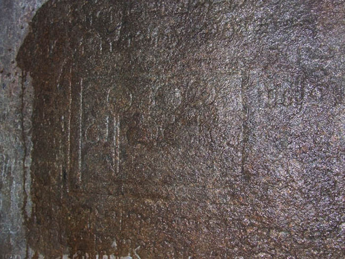 Above the Ganesa the grantha inscription ‘Parivadini-da’ is seen. The inscription is inscribed inside a square frame as seen at other places in the same district viz., Malaiyakkoil, Thirumeyyam. But the Kudumiyanmalai grantha term is inside double frame whereas at other places it is only inside single frame.