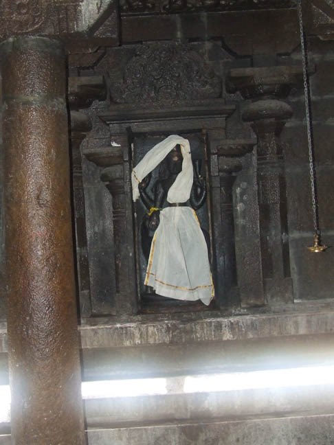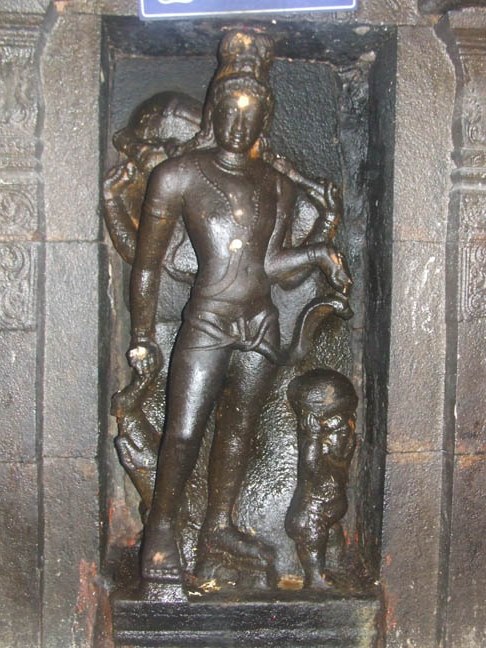 முகமண்டபத்தின் தென்புறச் சுவரில் உள்ள கோட்டத்தில் சடைமுடியுடனும் நெற்றிக்கண்ணுடனும் உள்ள பிச்சையேற்கும் அண்ணலின் சிற்பம் இடம்பெற்றுள்ளது. இவரது வலச்செவியை மகரகுண்டலமும் இடச்செவியைப் பனையோலைக் குண்டலமும் அலங்கரிக்கின்றன. கழுத்தில் சவடியும் முத்துமாலையும் அமைந்து வஸ்திர முப்புரிநூல் உபவீதமாக அமைந்துள்ளது. ஆடையற்ற இடையை அரைஞாணாகப் பாம்பு சுற்றியிருக்கிறது. வலமுன்கை மானுக்குப் புல்லை உணவாகக் கொடுத்துக்கொண்டிருக்க, பின்கை உடுக்கையைக் கொண்டும் இடமுன்கை திருவோட்டைக் கொண்டும் பின்கை கவரியைக் கொண்டும் அமைந்துள்ளன. செருப்பணிந்த கால்கள் நடக்கும் நிலையிலிருக்க, தலைமேல் திருவோட்டை ஏந்திய பூதம் உடன் நடந்து வருவதுபோல் காட்டப்பட்டுள்ளது.