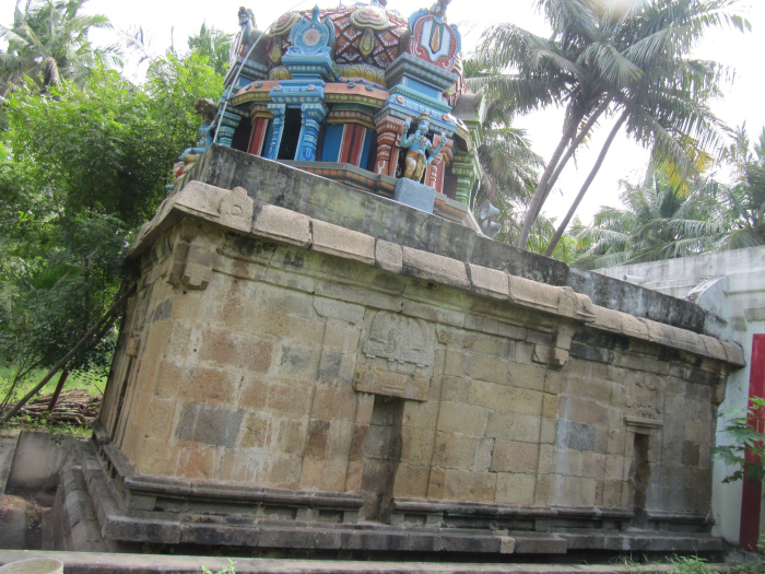 விமான ஆதிதளத்தின் முப்புறத்தும் உள்ள கோட்டங்கள் அலங்கரிப்பற்ற மகரதோரணங்கள் கொண்டுள்ளன. இக்கோட்டங்களின் அணைவுத்தூண்கள் கூரையுறுப்புகள் தாங்க, மேலே சாலை சிகர அமைப்பு. கிழக்குக் கோட்டம் மட்டும் பிற்கால அமைப்பிலான விஷ்ணுவின் நின்றகோலத் திருமேனியைப் பெற்றுள்ளது. கட்டமைப்பில் விமானத்தைப் பின்பற்றியுள்ள முகமண்டபத்தின் இரண்டு கோட்டங்களும் மகரதோரணங்களுக்கு மாற்றாகப் புதுமையான மாலைத்தோரணம் பெற்று வெறுமையாக உள்ளன. தோரணங்களில் மனிதத் தலை செதுக்கப்பட்டுள்ளது. இக்கோட்டங்கள் விமானக் கோட்டங்களினும் அகலக் குறுக்கமாக உள்ளன. கிரீவம், சிகரம் இரண்டும் செங்கல் கட்டுமானங்களாக வண்ணப்பூச்சுப் பெற்று நான்கு பெருநாசிகைகளிலும் விஷ்ணுவின் திருமேனிகளைக் கொண்டுள்ளன.