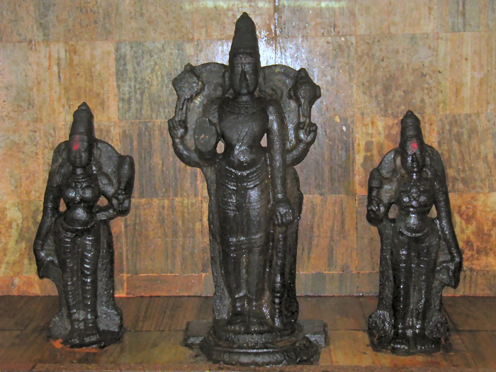 கருவறையில் தேவியர்களுடன் விஷ்ணு