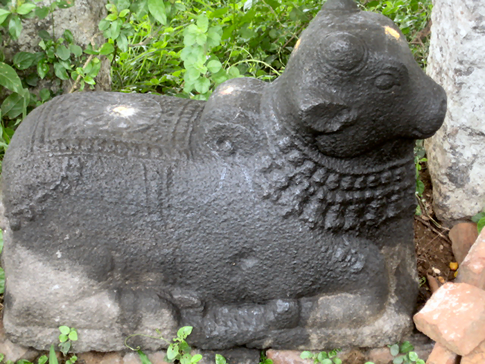 ஊரின் வடகிழக்குப் பகுதியில் ஏரிக்கு அருகாமையில் விளைநிலங்களுக்கிடையே சிதைந்த நிலையில் சிவபெருமான் கோயிலொன்று அமைந்துள்ளது. இத்திருக்கோயிலின் தற்போதைய நிலை கண்களில் நீரை வரவழைக்கும் அளவிற்கு உள்ளது. ![]() கரும்பூர் சிவபெருமான் திருக்கோயில் திருக்கோயிலின் பல்வேறு கட்டிடப் பகுதிகளும் கல்வெட்டு பொறிக்கப்பட்டுள்ள கற்களும் சிற்பங்களும் ஆங்காங்கே சிதறிக் கிடக்கின்றன. இத்திருக்கோயிலின் தாங்குதளம் (அதிஷ்டானம்) மட்டும் கருங்கற்களால் அமைக்கப்பட்டு மேலே செங்கற்களால் விமானம் எழுப்பப்பட்டிருக்கலாம் என்பதை ஊகிக்க முடிகிறது. பழுதுபட்டுள்ள ஆதிதளக் கருவறை மட்டும் இன்னும் இடிபாடுறாமல் மிச்சமிருக்க தளத்தின் மேற்பகுதிகள் அனைத்துமே சிதைந்துவிட்டன. ![]() கருவறை ![]() சூரியன் கருவறையில் லிங்க உருவில் சிவபெருமான் எழுந்தருளியுள்ளார். சதுர வடிவில் ஆவுடையாரைக் கொண்டுள்ளது லிங்கம். லிங்கம் தவிர சோழர்காலச் சூரியன், அம்மன் முதலான தெய்வங்களின் திருவுருவங்கள் உரிய பீடங்களின்றி கருவறையில் காணப்படுகின்றன. கோயிலின் வடபுறத்தில் சண்டேசுவரர் சிற்பம் காணப்படுகிறது. திருக்கோயில் நல்நிலையில் இருந்த காலத்தில் இதர பரிவார தெய்வங்களும் இருந்திருக்கலாம். தற்போது அவற்றைக் காண இயலவில்லை. கருவறைக்கெதிரே நந்தியெம்பெருமான் அமைதியாக எழுந்தருளியுள்ளார். ![]() நந்தி கோயிலைச் சுற்றிச் செடிகளும் கொடிகளும் வளர்ந்துள்ளன. போதிய பராமரிப்பின்றி இத்திருக்கோயில் தன் இறுதி நாட்களை எண்ணிக் கொண்டுள்ளது. ![]() சிதறிய கற்பகுதிகள் கல்வெட்டுக்கள் இக்கோயிலில் காணப்பட்ட கல்வெட்டுக்கள் மத்தியத் தொல்பொருள் ஆய்வுத்துறையால் படியெடுக்கப்பட்டு கல்வெட்டு ஆண்டறிக்கை (ARE) 1934-35ல் அவற்றின் சுருக்கங்கள் வெளியாகியுள்ளன. ‘கரும்பூர்’ என்று தற்போது அழைக்கப்படும் இவ்வூர் முற்காலத்தில் ‘கருமூர்’ என்று அழைக்கப்பட்டதை அறியமுடிகிறது. ஆமூர் கோட்டத்தில் குமிழி நாட்டில் அமைந்துள்ள ‘பெருந்தோட்டத்து ஆழ்வார்’ என்றறியப்படும் இக்கோயிலின் இறைவனின் வழிபாட்டிற்காக தானமொன்று அளிக்கப்பட்ட செய்தியினை முதலாம் இராஜராஜரின் 26ம் ஆட்சியாண்டுக் கல்வெட்டொன்று இயம்புகின்றது. மேலும் மூன்றாம் இராஜராஜனின் 4ம் ஆட்சியாண்டில் தில்லை நாயக அறையன் கூத்தன் என்பவர் நந்தா விளக்கு எரிக்க தானமளித்த செய்தி காணப்படுகிறது. மற்றொரு கல்வெட்டில் மாம்பாக்கத்தைச் சேர்ந்த பெரியான் அரசன் என்பார் விளக்கெரிக்க தானமளித்த செய்தியையும் தெரிந்து கொள்ள முடிகிறது. சோழர் காலத்தில் இத்திருக்கோயில் சிறப்பாகப் போற்றிப் பராமரிக்கப்பட்டு வழிபாடுகள் நிறைவுற நடைபெற்றதை கல்வெட்டுக்கள் கொண்டு 
