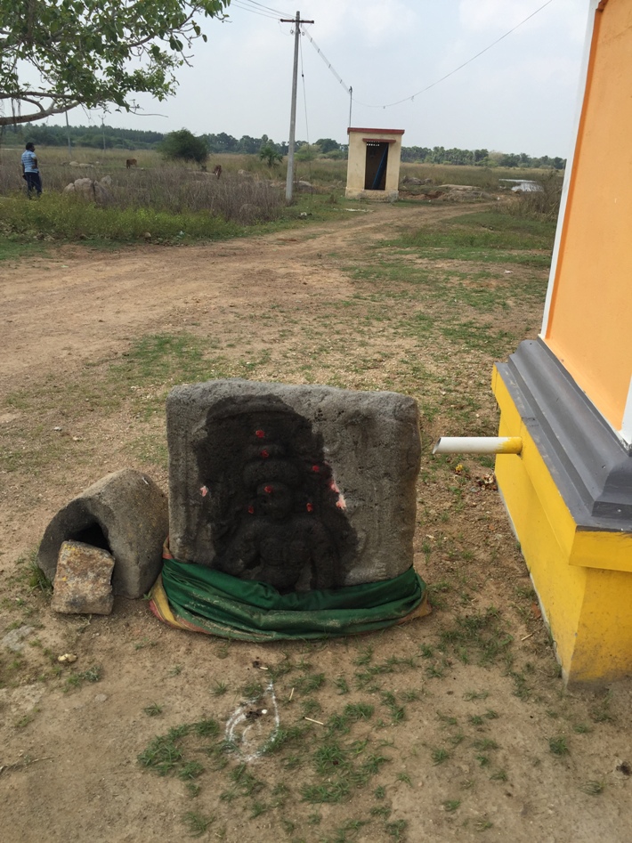 தமிழ்நாடு அரசு தொல்லியல் துறையின் முன்னாள் துணை இயக்குனர் திரு. கி.ஶ்ரீதரன் அவர்களிடம் வழியைக் கேட்டறிந்து நந்தேசுவரர் கோயிலை ஆவலுடன் அடைந்தபோது, குடமுழுக்கு முடிந்து பிராமிக் கல்வெட்டு இருந்த பகுதி மண்ணுக்குள் புதைக்கப்பட்டுச் சிவலிங்கம் வழிபடப்பெற ஆரம்பித்துவிட்டிருந்தது. இனி அக்கல்வெட்டை நேரில் காணச் சாத்தியமே இல்லை. சென்னை எழும்பூரில் உள்ள தொல்லியல் துறை அலுவலகத்தில் அக்கல்வெட்டின் மசிப்படி இருப்பதாகக் கேள்விப்பட்டு, ஒருநாள் அங்குச் சென்று பார்த்துக் கொள்ளலாம் என்று ஏமாந்த மனதைச் சற்று ஆறுதல் படுத்திக்கொண்டு அவ்வூரிலேயே இருக்கும் பொன்னியம்மன் கோயிலின் பல்லவக் கொற்றவையைக் காணச் சென்றோம்.