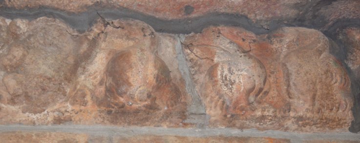 SCULPTURES IN THE HARMAYA OF THE SECOND TALA The square sputitas in the second tala are adorned with bas-relief sculptures. Totally there are six relief figures each two on west, north and south while on the eastern side the vritta sputita is seen. On the northern side two females, on the southern side two males and on the western side a male and a female are seen.