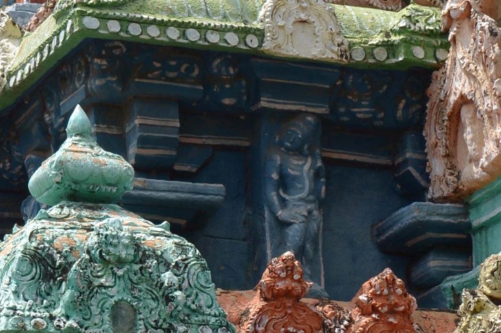 THE SCULPTURES IN THE VIMANA Hara elements, nasikas in the harantara, the square sputitas in the harmaya of the second tala, griva koshthas and the walls of the griva are adorned with sculptures and bas-relief sculptures. Most of the sculptures in the vimana lost its originality due to refurbishment.