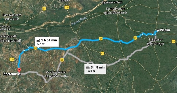 (விசலூருக்கு கூகுள் மேப் காட்டிய வழி)