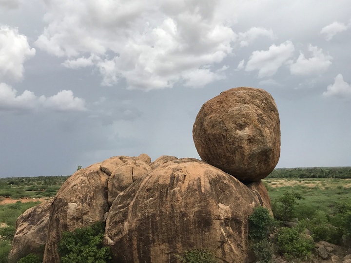 அருமையான விழாக்கூடமாக அம்மண்டபம் விளங்குகிறது! இப்பொழுது உள்ள நிலையிலேயே ஒரு மிகப்பெரிய நடன நிகழ்ச்சியோ பாட்டுக்கச்சேரியோ தாராளமாக நடத்தலாம் என்றே தோன்றியது. இம்மண்டபத்தைப் பார்த்துவிட்டு அங்கிருந்து விசலூரைத்தேடிச் செங்கிப்பட்டிச் சாலையில் சிறிது தூரம் சென்றவுடன் ஒரு நாற்சந்தி வந்தது. இங்கு விசாரித்தால் சரியாக இருக்கும் என்று தோன்றியது. வண்டியை நிறுத்தி அங்குள்ள வயதில் மூத்த டீக்கடை வைத்திருந்த ஒரு மூதாட்டியிடம் விசலூர் எப்படிப் போவது என்று கேட்க, "எங்கேர்ந்து வர்ரீக?" "கீரனூர்லேர்ந்து பாட்டி" "அங்கனேர்ந்தே போயிருக்கவேண்டியதுதானே" நாம் திரு திரு என்று விழிக்க, "கீரனூர் கிள்ளுக்கோட்டை ரோட்டுலதான்யா விசலூர் இருக்கு" "அப்படியா பாட்டி! இங்கேர்ந்து நாங்க திருப்பியும் கீரனூர் போய்தான் போகணுமா இல்லை வேறு வழியிருக்கா பாட்டி?" என்று கேட்க, "குன்னாண்டார் கோயில் போயி அங்ஙனர்ந்து கிள்ளுக்கோட்டை போங்க, அப்பறமா மலையடிப்பட்டி வரும். மலையடிப்பட்டி தாண்டிக் கீரனூர் ரோட்டுல விசலூர் வரும்யா" "சரி பாட்டி எங்க மூணுபேர்க்கும் டீ கொடுங்க" அம்மூதாட்டி மிகுந்த வாஞ்சையுடன் தேனீர் தயாரித்துக் கொடுத்தார் அதை அருந்திவிட்டு அவர் கூறிய பாதியில் திரும்ப, குன்றாண்டார் கோயில் வந்து அங்கிருந்து கிள்ளுக்கோட்டை வழியாக மலையடிப்பட்டியை அடைந்தோம். மலையடிப்பட்டியில் இரண்டு குடைவரைகளும் பூட்டியிருக்கவே முனைவர் சுமிதா அவர்கள் இங்கு இந்த மலைக்கு அப்பால் சமணப்படுக்கைகள் உள்ளன. அவைகளைப் பார்க்கலாம் என்று அழைத்துச் சென்றார். மலையடிப்பட்டி சிவன் கோவிலுக்குப் பின்பகுதியில் பெரிதும் சிறிதுமான மலைக்குன்றுகள் இடம் பெற்றிருந்தன. அப்படியான ஒரு பாறைக்குன்றில் இயற்கையாகவே ஒரு மனிதச்சிற்பம் அமைந்த அதிசயம் அற்புதமாயிருந்தது.