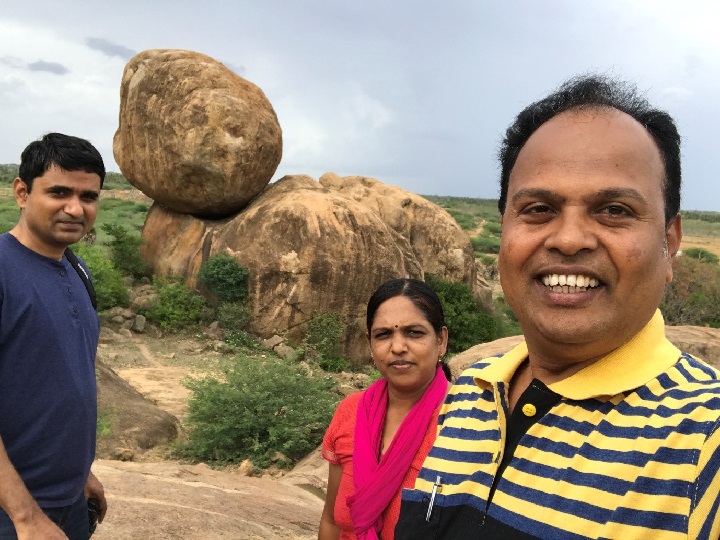 பலமுறை உற்றுப்பார்க்க யாரோ முனைந்து செதுக்கிய சிற்பம் போலும் காட்சியளித்தது. அருகில் சென்று பார்த்தால் ஓர் உருவம் இருந்ததற்கான சுவடே தெரியவில்லை. அதிசயம், ஆச்சர்யம் ஆனால் உண்மை. சற்று தொலைவில் இருந்து பார்த்தால் மட்டுமே ஓர் உருவம் தென்படுகிறது. கீழே உள்ள படம் காண்க! பிறகு மூவரும் ஒரு செல்ஃபி எடுத்துக் கொண்டோம்