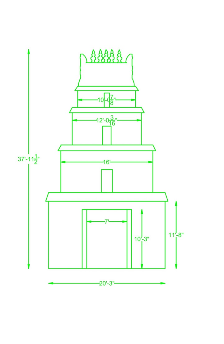 உறுப்பு வேறுபாடுகளற்ற கருங்கல் தாங்குதளத்தின் மேலெழும் செங்கல் கட்டுமானக் கோபுரம் மூன்று தளங்களுடன் விளங்குகிறது. ஆதிதளச் சுவரின் முடிவில் கருங்கல் பலகைகளால் ஆன கூரையைச் செங்கல் கட்டுமானம் தாங்குகிறது. தெற்கு வடக்காக 20' நீளமும் கிழக்கு மேற்காக 14' அகலமும் கொண்ட கோபுரத்தின் ஆதிதளம் 7'அகலமும் 10'3" உயரமும் கொண்ட நுழைவாயில் பெறுகிறது. இந்நுழைவாயிலின் நிலை கருங்கற்களினால் செய்யப்பட்டு, செங்குத்தாக உயரும் நிலைக்கால்களின் கீழ்ப்பகுதி சுமார் 1'6" உயரத்தில் நாகபந்தம் பெற்று விளங்குகிறது. இந்த நாகபந்தத்திலிருந்து நிலைக்கால்களின் இரண்டு பக்கமும் அழகாக இரண்டு கோடுகளுக்கு இடைப்பட்ட பகுதியில் உருளைக்கம்பு பொருத்தியது போல் செதுக்கப்பட்டு நிலைக்கால்களின் தோற்றத்திற்கும் நிலைக்கால்களின் மேலே பொருத்தப்பட்ட உத்திரத்திற்கும் அழகு சேர்த்துள்ளனர். இந்த நாகபந்தம் காண்பிக்கப்பட்ட நிலைக்கால்களிலிருந்தே இந்தக் கோபுரக்கட்டுமானம் வெகு நிச்சயமாக அசல் விமானத்தின் காலகட்டத்தில் கட்டப்படவில்லை என்பதை நாம் உணர்ந்து கொள்ளலாம்.