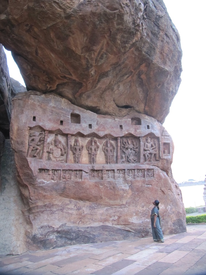 நளினி பேறு பெற்றவர். அஜந்தா, எல்லோரா தொடங்கி இந்தியாவின் பல மரபுப் பேரரசுகளின் கைவண்ணங்கள் காணும் வாய்ப்பு அவருக்கு அமைந்தது. சென்னையில் தனியார் கல்லூரிகளில், கிடைத்த வேலைவாய்ப்புகளில் வரலாறு கற்பித்துக் கொண்டிருந்த எனக்கு நினைத்த நேரத்தில் விடுமுறை கிடைக்காது. முசிறியில் நிலையான பணிக்கு வந்த பிறகுதான் தொடர்விடுப்பு எளிதானது. விளைவு, இதோ, இங்கே புலிகேசியின் மண்ணில். உடல் சிலிர்த்துக்கொண்டது. காற்று சிவகாமியின் சபதத்தையும் மாமல்லரின் சளுக்கியப் படையெடுப்பையும் செவியோரத்தே மென்குரலில் சொல்லிச் சென்றாலும், கண் முன்னே நிற்கும் அந்தப் பெரும் பாறை சளுக்கியர்களைப் பற்றியே சிந்திக்கவைத்தது.