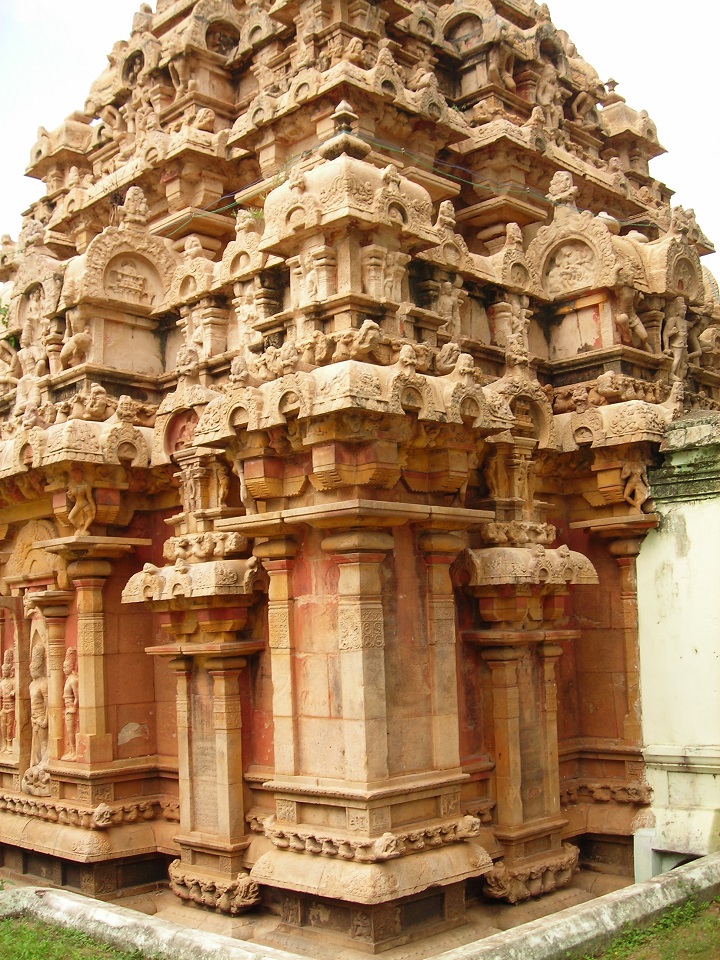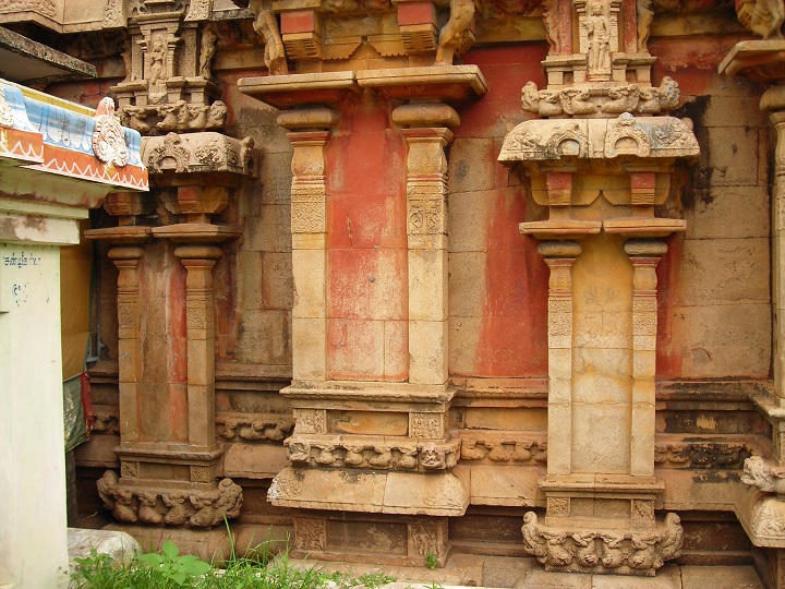விமான வடக்குப்பஞ்சரங்கள் வடக்கில் மேற்குப்பஞ்சர கிரீவகோட்ட நந்தியணுக்கர் தாமரைத்தளத்தில் வலப்பாதமிருத்தி, இடமுழங்காலைச் சற்றே மடித்துப் பாதத்தைத் திரயச்ரமாக்கியுள்ளார். இடஒருக்கணிப்பிலுள்ள அவர் முகம் வலத்திருப்பமாக, வல முன் கை கடியவலம் பிதத்தில். இட முன் கை அருகிலுள்ள நந்தியின் தலைமீது. வலப் பின் கை தோளைத் தொட்டுக் கடகத்தில் அமைய, இடப் பின் கையும் கடகத்தில். இளமை பொலியும் முகத்துடன் எழிலராய்க் காட்சிதரும் சிவபெருமானின் தோற்றம் கண்களை நிறைக்கும் காவியமாகும். வடக்கின் கிழக்குப்பஞ்சர கிரீவகோட்டத்தில் இடஒருக்கணிப்பிலுள்ள ஆடவரின் வலக்கை சிதைந்துள்ளது. இடக்கை கடியவலம்பிதத்தில். முகமண்டப வடக்குப்பஞ்சரங்கள் வடக்குப் பஞ்சரங்களில் மேற்கு கிரீவகோட்டத்தில் வலக்கால் ஊன்றி இடக்காலை முழங்காலளவில் மடித்து வலஒருக்கணிப்பில், முகத்தை இடந்திருப்பி நிற்கும் உமையின் தோற்றம். வலக்கை சிதைந்துள்ளது. நடுத்தொங்கலுடன் இடையாடை பெற்றுள்ள அவரது இடக்கை, கைகளை இடுப்பிலிருத்தி இடப்புறம் நிற்கும் தோழியின் தலையில். கிழக்கு கிரீவகோட்டத்தில் முயலகன் தலைமீது இடக்காலும் முதுகில் வலக்காலும் ஊன்றி யவராய் முப்புரம் எரித்த சிவபெருமான். இடஒருக்கணிப்பி லுள்ள அவர் வலக்கையில் அம்பு. இடக்கையில் வில். முகம் வலத்திருப்பமாய். முகமண்டபக் கிழக்குப்பஞ்சரங்கள் கிழக்குப் பஞ்சரங்களில் வடக்கு கிரீவகோட்டத்தில் வலஒருக்கணிப்பில் இடக்கையை மார்பருகே இருத்தியுள்ள அழகி. அவரது வலக்கை கடியவலம்பிதத்தில். தெற்கு கிரீவகோட்ட அழகி இடஒருக்கணிப்பிலுள்ளார். இடத்தோளில் சடைத்திரள் புரள, வலக்கையை வயிற்றருகே ஏந்தலாய்க் கொண்டுள்ள அவர் இடக்கையில் கவரி. விமானக் கிழக்குப்பஞ்சரங்கள் தெற்குப்பஞ்சர கிரீவகோட்டத்தில் கருவறைக்காய் ஒருக்கணித்துள்ள அழகியின் வலக்கையில் கவரி. அவரது இடக்கை மறைந்துள்ளது. இடப்புறம் சடைத்தொங்கல். வடக்குக் கிரீவ கோட்டத்தில் கருவறைக்காய் வலஒருக்கணிப்பிலுள்ள அழகியின் இடக்கை கடியவலம்பிதத்தில். நடுத்தொங்கலுடன் ப டாடை பெற்றுள்ள அவரது வலக்கையில் கவரி. அம்மையின் வலப்புறம் தாமரையுடன் பூக்குடுவை.