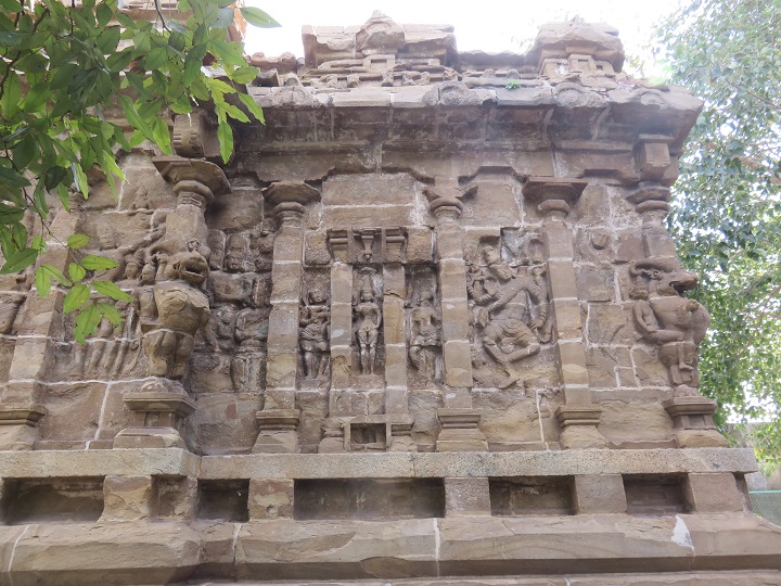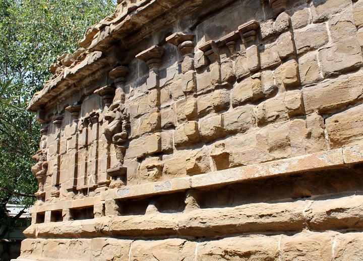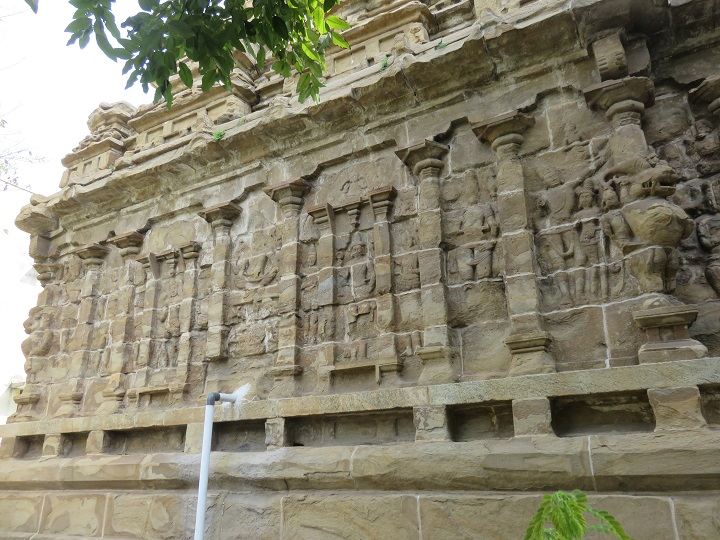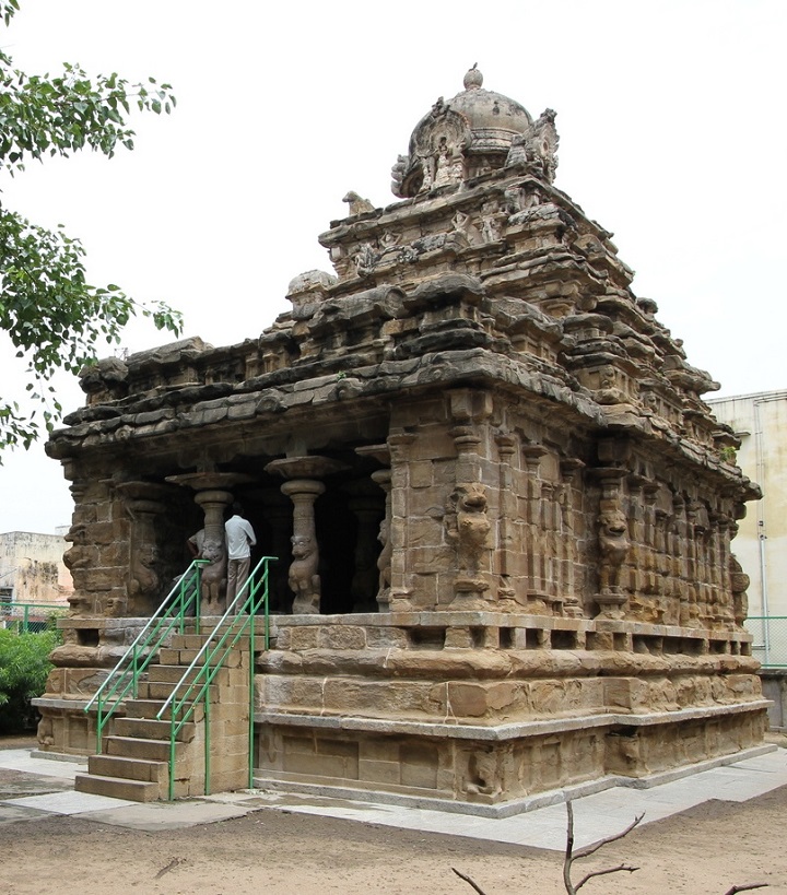 காஞ்சிபுரத்திலுள்ள பல்லவக் கற்றளிகளுள் மதேங்கேசுவரம் குறிப்பிடத்தக்கது. இம்மணற்கல் தளி மேற்கு நோக்கிய முத்தளக் கலப்பு வேசர விமானமும் முகமண்டபமும் கொண்ட கட்டுமானமாகும். ![]() தாங்குதளம் சற்றே உயரமான துணைத்தளத்தின் மேல் உபானத்துடனான பாதபந்தத் தாங்குதளம் கொண்டெழும் இதன் துணைத்தளக் கண்டம் நாற்றிசைத் திருப்பங்களிலும் யானைமுகங்கள் கொள்ள, உபானமும் பெருவாஜனமும் தாங்குதளப் பட்டிகையும் கருங்கல்லால் அமைந்துள்ளன. இக்கோயிலின் சுவர்களும் ஆரம் உள்ளிட்ட மேலுறுப்புகளும் சிற்பங்களும் பெரிதும் சிதைந்துள்ள போதும் இருப்பன கொண்டு இதன் கட்டமைப்பை அறியமுடிகிறது. சுவர்கள் விமானச் சுவர்களின் நான்கு திருப்பங்களிலும் வீரர் அமர் தாவுயாளித் தூண்கள். இத்தூண்களுக்கு இடைப்பட்ட சுவர்கள் பாதம் பெற்ற ஆறு நான்முக அரைத்தூண்களால் ஏழு பிரிவுகளாக்கப் பட்டுள்ளன. இத்தூண்களின் பாலி உள்ளிட்ட தலையுறுப்புகள் எண்முகமாக உள்ளன. மூன்றாம், ஐந்தாம் பிரிவுகளின் நடுப்பகுதியில் சட்டத்தலை நான்முக அரைத்தூண்கள் தழுவிய கோட்டங்கள். அவற்றின் இருபுறத்தும் உள்ள சுவர்த்துண்டுகளில் கோட்டத் தெய்வத் தொடர்புடைய சிற்பங்கள். கோட்டத் தலைப்பாக உத்திரம், வாஜனம் அமைய, மேலே மகரதோரணம். அணைவுத் தூண்களின் பலகைகளோடு தலைப்புறுப்புகள் இணைந்துள்ளன. இத்தலைப்புறுப்புகளை இடத்தில் பொருத்துமாறு போலத் தோரணத்தொங்கல். கூரையுறுப்புகள் சுவர்த்தூண்களின் மேலுள்ள பட்டை பெற்ற வளைமுகத் தரங்கப் போதிகைகள் வெறுமையான வலபி உள்ளிட்ட கூரையுறுப்புகள் தாங்க, மேலே மண்வெட்டியொத்த தலைப்புடன் திசைதோறும் எட்டுக் கூடுவளைவுகளுடன் கபோதம். கூடுகளில் கந்தருவத்தலைகள். மேலே பூமிதேசம், வேதிகை. கீழ்த்தள ஆரம் கீழ்த்தளக் கூரையின் மேல் கர்ணகூடங்கள், இருசாலைகள், அவற்றை இணைக்கும் ஆரச்சுவர் என அமைந்துள்ள ஆரம் ஆறங்கம் பெறுள்ளது. ஆரச்சுவரில் ஆரஉறுப்புகளுக்கு இடைப் பட்டனவாய் ஆறங்கக் குறுநாசிகைகள். சாலை, கர்ணகூடங்களின் சுவர்த்திருப்ப நான்முக அரைத் தூண்கள் குந்து சிம்மமாக வடிவம் பெற, சுவர்ப்பகுதியில் மேலுமிரு உறுப்புவேறுபாடற்ற நான்முக அரைத்தூண்கள். அவற்றின் மேலுள்ள கூரையுறுப்புகளை அடுத்து இரு கூடு வளைவுகளுடன் கபோதம். மேலே பூமிதேசம், வேதிகை, ஆரஉறுப்புகளின் கிரீவசுவரிலும் உறுப்புவேறுபாடற்ற நான்முக அரைத்தூண்கள். மேலே கூரையுறுப்புகள், சிகரம். ஆரஉறுப்பு களின் தலைப்புப் பெற்ற சிறு நாசிகைகளிலும் ஆரச்சுவரின் குறுநாசிகைகளிலும் கந்தருவத்தலைகள். இரண்டாம் தளம், ஆரம் கீழ்த்தள ஆறங்க ஆரத்தின் பின்னெழும் விமானத்தின் இரண்டாம் தளக் கர்ண, சாலைப்பத்திகள் தாய்ச்சுவரினும் சற்று முன்தள்