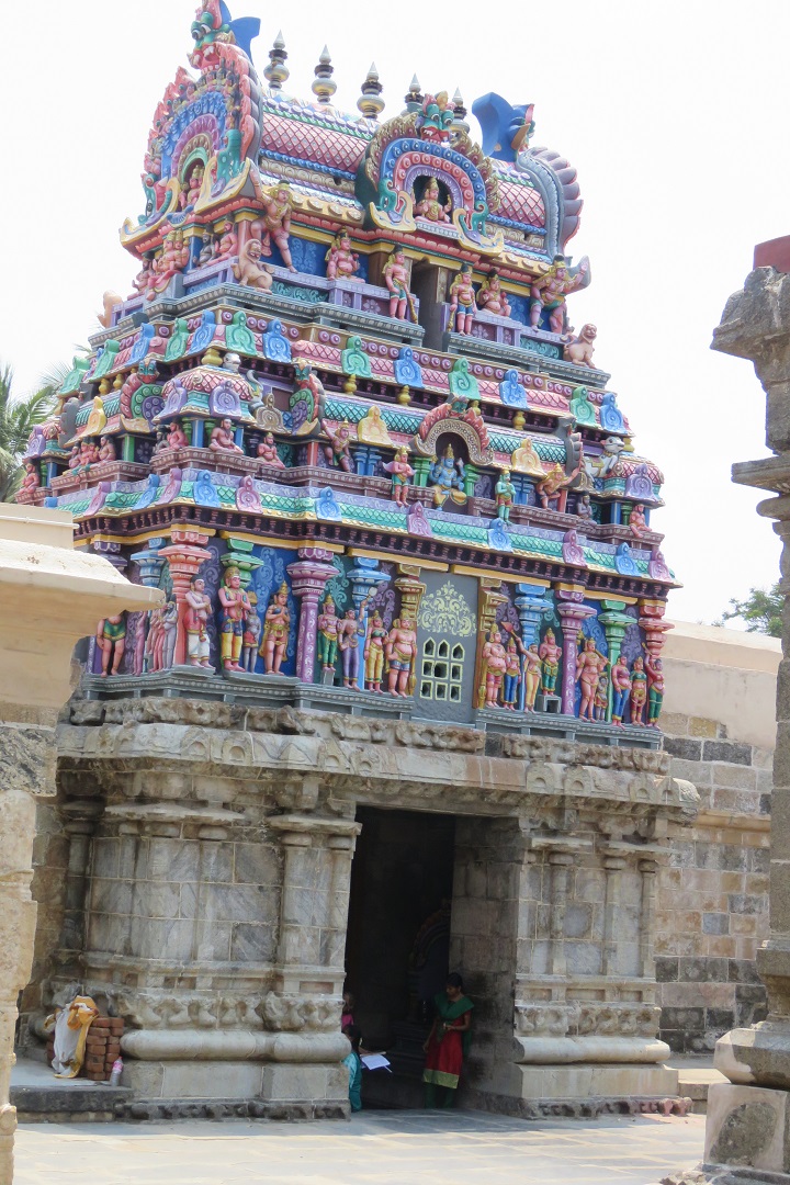 இக்கோபுரத்தின் தென்கிழக்குப் பகுதியை ஒட்டி விரியும் தளத்தில் இடுப்பிற்குக் கீழ் உடைந்த வாயிற்காவலர் சிற்பம். சடைமகுடம், பனையோலைக் குண்டலங்கள், சரப்பளி, சன்னவீரம், உதரபந்தம், தோள், கை வளைகள் கொண்டுள்ள அதன் வாயில் கோரைப்பற்கள். கூரையை அடுத்துத் தளமுடிவு காட்டும் பூமிதேசமும் வேதிகையும் அமைய, ஆரமற்ற நிலையில் இரண்டாம் தளத்தின் எழுச்சியைக் காணமுடிகிறது. சீனிவாசநல்லூர்க் குரங்கநாதர் விமானத்தை ஒத்த இவ்விருதளக் கட்டுமான நேர்த்தி இதையும் தஞ்சாவூரில் அமைந்த முதல் ராஜராஜரின் ராஜராஜீசுவர விமானத்தின் முன்னோடியாகக் கருதச் செய்கிறது.