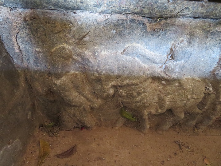 நெடுங்களநாதர் வளாகத்துள்ள அம்மன்கோயில் பெருமண்டபத் தென்முகத்தில் வெளித்தெரியும் துணைத்தளப் பகுதியில் மண்டப வாயிலின் வலப்புறம் கோலாட்டமும் இடப்புறம் ஊர்வலமும் சிற்பத்தொடராகக் காட்சியாகின்றன. ஊர்வலத்தில், முன்னால் ஒருவர் ஓங்கிய வாளுடன் நன்கு அலங்கரித்த குதிரையை நடத்திச்செல்ல அதன் மேல் இவர்ந்துள்ளவர் இடக்கையில் கடிவாளத்தைப் பிடித்தவாறு வலக்கையை நீட்டியுள்ளார். குதிரையின் பின்னால் குடை, கவரி, குடுவை, சந்தனக்கிண்ணம் ஆகியவற்றுடன் பணியாட்கள் ஐவரும் வாள், கேடயம் கொண்டவர்களாய் வீரர்கள் மூவரும் பின்தொடர்கின்றனர்.