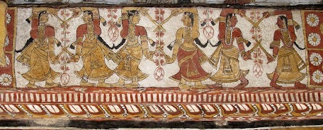 வல்லம் கோலாட்டம் நீ அறிவாய். 1990லேயே அது குறித்த என் தினமணி கதிர் கட்டுரையை உனக்குத் தந்திருக்கிறேன். அக்கோயிலிலுள்ள கலையெழில் தொட்டிகள் ஒன்றில் காட்சிப்படுத்தப்பட்டுள்ள கோலாட்டம் மங்கல நிகழ்வின்போது நிகழ்த்தப்பட்டதாகும். கருவுற்ற பெண் ஒருவர் அமர்ந்திருக்க, அவருக்குப் பூச்சூட்டி ஒப்பனை செய்கிறார் தோழி. முன்னால் கோலாட்ட நிகழ்வு. வளைந்தும் நிமிர்ந்தும் சாய்ந்தும் சரிந்தும் கோலாட்டமிடும் அழகியர்தம் இடையாடைகள் அவர்தம் ஆட்டத்திற்கேற்ப விரிந்தும் சுருங்கியும் மடிப்புகளுடன் விளங்க, இவ்வாட்டத்திற்கு மத்தளம் வழித் தாளம் தருகிறார் ஆடவக்கலைஞர். கோயில் மடைப்பள்ளியில் உள்ள மற்றொரு தொட்டியிலும் அதன் கீழ்ப்புறத்தே கோலாட்டக் காட்சியும் அன்னங்களும் காட்டப்பட்டுள்ளதைப் பார்த்தது உனக்கு நினைவிருக்கலாம்.
