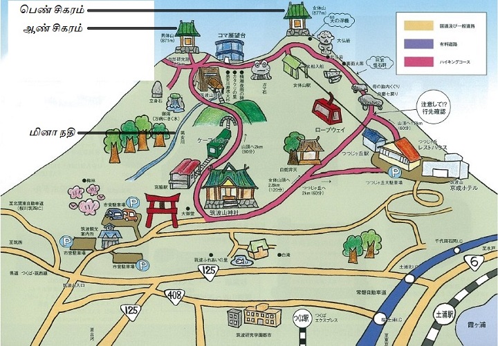 இந்த ட்சுகுபா மலை இரு சிகரங்களைக் கொண்டது. 871 மீட்டர் உயரம் கொண்ட ஆண் சிகரம், 877 மீட்டர் உயரம் கொண்ட பெண் சிகரம் என அவை அழைக்கப்படுகின்றன. நதியின் பெயரான மினா என்பதன் பொருள் ஆணும் பெண்ணும் இணைந்த என்று பொருள். நம் மாதொருபாகனார் போல. மினே என்றால் சிகரம். 3வது அடியில் மினா ஆற்றைக் குறிக்கும் சொல்லுக்கு மோனையாக 2வது அடியின் முதல் சீராக இடம்பெற்றிருக்கிறது மினே. இந்த மலையின் பெயர் ட்சுகுபாவில் இருக்கும் ட்சுகு என்ற சொல்லுக்கு இணைதல் என்றொரு பொருளும் உண்டு. நான்காவது அடியில் வரும் கொய் என்ற சொல்லுக்குக் காதல் என்றொரு பொருளும் அடர்நிறம் என்றொரு பொருளும் உள்ளன. ஆழமான இடத்தில் சேரும் நீர் அடர்நிறமாக மாறுவதுபோல் என் இதயத்தில் காதலும் அடர்த்தியாகிறது என்ற தொனியில் கையாளப்பட்டுள்ளது. இவைபோலச் சொல்லழகு நிறைந்த இந்த ஒரே ஒரு பாடல் மட்டுமே இவர் இயற்றியதாக ஜப்பானிய இலக்கியங்களில் இடம்பெற்றிருக்கிறது.