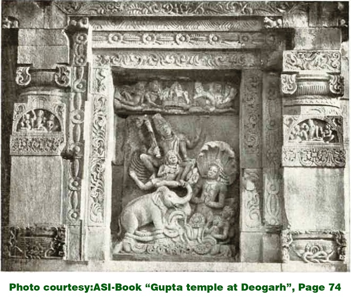 The story of Gajendramoksha is narrated in the Bhagavatha Purana for the very first time. After Bhagavatha Purana the story is referred by Nilamata, Skanda and Vamana Puranas.