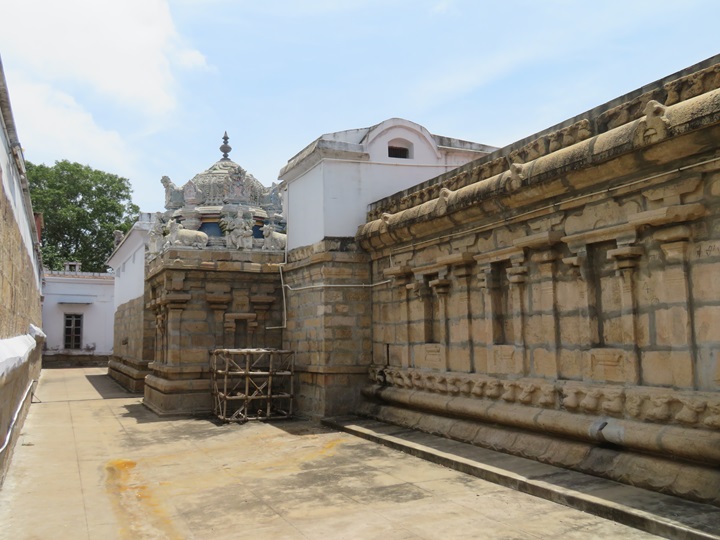 சிராப்பள்ளிக் கரூர்ச் சாலையில் 8 கி. மீ. தொலைவில் காவிரியின் தென்கரையிலுள்ளது வடகுடி. நெடுஞ்சாலையில் இருந்து ஊருக்காய்ப் பிரியும் கிளைச்சாலையின் தொடக்கத்தில் உள்ளடங்கிக் காட்சியளிக்கும் வடகுடிப் பஞ்சநதீசுவரர் கோயிலும் முற்சோழர் காலக் கற்றளியே. இதே கிளைச் சாலையில் 2 கி. மீ. தொலைவிலுள்ள அல்லூர் நக்கன் கோயில் போலன்றி வடகுடியாரைக் காண அவ்வப்போதேனும் மக்கள் வரத்து உண்டு. கல்வெட்டுகள் நிறைந்திருக்கும் இக்கற்றளி பல புதிய இணைப்புகளைப் பெற்றபோதும் பழைமைச் சுவடுகளையும் பாங்காகவே காத்துக்கொண்டுள்ளது.1 ஊருக்குள் நுழைந்ததும் வலப்புறம் கிழக்குப் பார்வையிலான கோபுரமும் தேரோடும் வீதியோடமைந்த வளாகத்தை வளைத்த மதில்சுவருமாய்ப் பழைமையின் பெருமையாய்ப் புன்னகைக்கிறது கல்வெட்டுகளில் வடகுடி மகாதேவர் கோயிலாக அறிமுகமாகும் இன்றைய பஞ்சநதீசுவரர் கோயில். கோபுரம் துணைத்தளம், பாதபந்தத் தாங்குதளம், வேதிகைத்தொகுதி கொண்டெழும் சாலைப்பத்தி முன்தள்ளலுடன் அமைந்த கோபுரத்தின் கீழ்த்தளச் சுவரை நான்முக அரைத்தூண்கள் தழுவியுள்ளன. தூண்களின் மேலுள்ள தரங்கவெட்டுப் போதிகைகள் கூரையுறுப்புகள் தாங்க, மேலோட்டமான கூடுவளைவுகளுடன் கபோதம். துணைத்தளத்திலிருந்து கபோதம்வரை கருங்கல் அமைப்பாகவும் மேலே செங்கல் கட்டுமானமாகவும் விளங்குகிறது இந்த ஐந்து தளக் கோபுரம். மேற்றளங்கள் நான்கும் கீழ்த்தளம் போலவே சாலைப்பத்தி முன்தள்ளல் பெற்றுள்ளன. கோபுரக் கிழக்கு, மேற்கு முகங்களில் கீழிரு தள ஆரஉறுப்புகள் ஆறங்கம் கொள்ள, பிற மேற்றள ஆரஉறுப்புகள் இயல்பான அளவிலுள்ளன. தென், வடமுகங்களில் கீழ்த்தள ஆரம் மட்டுமே ஆறங்கம் பெற்றுள்ளது. தளச்சுவர்களின் பத்திப் பிரிப்புகளை நான்முக அரைத்தூண்கள் தழுவியுள்ளன. மேலே போதிகைகள் தாங்கும் கூரையுறுப்புகள். இரண்டாம் தள ஆரச்சுவர் தவிர, பிற ஆரச்சுவர்களில் குறுநாசிகைகள் இல்லை. சாலை நாசிகைகளும் கிரீவகோட்டங்களும் வெறுமையாக இருந்தபோதும், கிழக்குமுகத்தில் மட்டும் அவற்றின் இருபுறத்தும் பக்கத்திற்கொருவராய் நாசிகைக்காய் ஒருக்கணித்த காவலர்கள். இரு கையர்களாய் உள்ள அவர்களுள் கீழ்த்தளச் சாலைக் காவலர்கள் மட்டும் கால்களைக் குறுக்கீடு செய்து, உயர்த்திய திருவடியை ஒரு கை பற்றியுள்ள உருள்பெருந்தடி மீது இருத்தியுள்ளனர். மற்றொரு கை வியப்பிலோ, அச்சுறுத்தலிலோ உள்ளது. உருள்பெருந்தடி பற்றியுள்ள இரண்டாம், மூன்றாம் தளச் சாலைக் காவலர்களின் இரு பாதங்களும் தளத்தில். அவர்தம் மற்றொரு கை கீழவர் போல். நான்காம் தளச் சாலைக் காவலர்கள் ஒரு கையைத் தொடையிலிருத்த, கிரீவகோட்டக் காவலர்கள் அதைக் கடியவலம்பிதமாக்கி உள்ளனர். மற்றொரு க