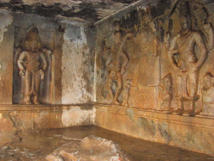 இந்நூலில் இடம்பெற்றுள்ள பத்தொன்பது குடைவரைகளையும் கருவறைக் குடைவரைகள், மண்டபக் குடைவரைகள் எனும் இரண்டு பிரிவுகளின் கீழ் வகைப்படுத்தலாம். பாறைக்குளம், ஆண்டிச்சிப்பாறை, குறத்தியறை, சிவகிரி, விழிஞம் குடைவரைகள் பாறைவடிப்பாகக் கருவறை மட்டுமே பெற்றுள்ளன. பாறைக்குளம் குடைவரை, கருவறையின் முன் கட்டுமான மண்டபம் ஒன்றைப் பெற்றுள்ளது. சிவகிரியில் கட்டுமான மண்டபத்துடன் கிழக்கிலும் வடக்கிலும் வாயில்கள் பெற்ற சுற்றும் உள்ளது. எஞ்சிய மூன்றும் பிறந்தமேனிக்கு உள்ள குடைவரைகளாகும். கருவறைக் குடைவரைகள் கருவறைக் குடைவரைகள் ஐந்தனுள் குறத்தியறையின் கருவறைத் தெய்வமாய் சமபங்க விஷ்ணு பொலிகிறார். சிவபெருமானுக்காக உருவான நான்கு கருவறைக் குடைவரைகளுள் விழிஞம் வெறுமையான கருவறை கொண்டுள்ளது. ஆண்டிச்சிப்பாறையில் முழுமையடையாத ஆவுடையாரை மட்டுமே காணமுடிகிறது. பாறைக்குளமும் சிவகிரியும் தாய்ப்பாறையில் உருவாகி முழுமையுற்றிருக்கும் இலிங்கத்திருமேனிகளைக் கொண்டுள்ளன. இவ்வைந்து கருவறைக் குடைவரைகளுள் கருவறையின் முன்சுவரில் சிற்பங்கள் இருப்பது விழிஞத்தில் மட்டுமே. ஆண்டிச்சிப்பாறையில் வாயிலை அடுத்துள்ள வலக்கோட்டத்தில் இடம்பெறாது, அதையடுத்துள்ள வலப்புறப் பாறைப் பகுதியில் அகழப்பட்டுள்ள கோட்டத்தில் பிள்ளையாரும் கருவறைப் பாறையின் பின் விரியும் அதன் தொடர்ச்சியான வலப் பாறையில் கோட்டம் அகழ்ந்து சேட்டைத்தேவியும் உருவாக்கப்பட்டுள்ளனர். தென்மாவட்டக் குடைவரைகள் பத்தொன்பதில் சேட்டைத்தேவி தாய்ப்பாறையில் உருவாகியுள்ள ஒரே இடமாக ஆண்டிச்சிப்பாறையைக் குறிக்கலாம். விழிஞம் குடைவரை விழிஞம் சிவபெருமான் திருநந்திக்கரைக் குடைவரை குறத்தியறையில் கருவறையின் வலப்பாறைச்சரிவில் உள்ள கோட்டத்தில் பிள்ளையார் காணப்படுகிறார். இடக் கோட்டத்தில் சிற்பம் உருவாகவில்லை. சிவகிரியிலும் பாறைக்குளத்திலும் கருவறை இலிங்கம் தவிர தாய்ப்பாறையில் உருவான சிற்பங்களாக வேறெவையும் இல்லை. மண்டபக் குடைவரைகள் தென்மாவட்டங்களின் பதினான்கு மண்டபக் குடைவரைகளில் கூத்தம்பூண்டியான் வலசுக் குடைவரை முகப்பு மட்டுமே பெற்றுள்ளது. நான்கு முழுத்தூண்களும் இரண்டு அரைத்தூண்களும் கொண்டு மிளிரும் ஒரே தென்தமிழ்நாட்டுக் குடைவரையாக வலசைக் குறிப்பிடலாம். முகப்புத் திறக்கப் பெற்றிருப்பின் ஐந்து இடைவழிகள் பெற்ற ஒரே தென்தமிழ்நாட்டுக் குடைவரையாகவும் வலசு அமைந்திருக்கும். திருமலைப்புரத்தில் மலையின் பின்புறத்தே ஒரு குடைவரை நிறைவடையாத பணியாய்க் கைவிடப்பட்டுள்ளது. திருமலைக் குடைவரை முகப்பு திருமலை முருகன் கூத்தம்பூண்டியான் வலசு வெற்றுக் கருவறைகள் வ