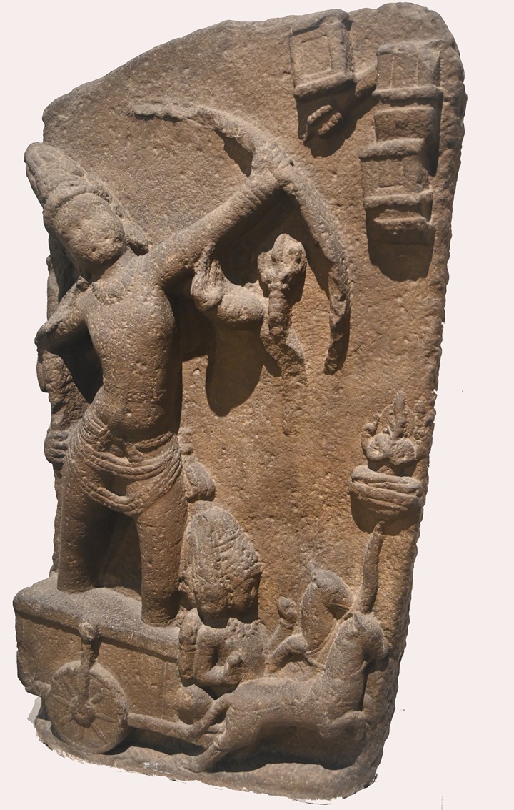 This collection showcases the convergence of Gandhara and Mathura sculptures with images of the Buddha and Jaina tirthankaras from the Iksvaku era, thereby providing a visual record of the expansive spread of religious art across the northern regions of India.