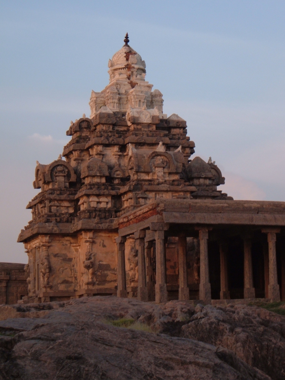 விதவிதமாக வெவ்வேறு வடிவங்களில் கோயில் கட்டுமானத்தை வளர்த்திச் சென்ற கலாரசிகர் இராஜசிம்ம பல்லவரின் முத்தாய்ப்பு படைப்புக்களான அதிரண சண்டேஸ்வரம் , தர்மராஜ இரதம் , கடற்கரைக் கோயில்கள் (மாமல்லை) - காஞ்சி கையிலாயநாதர் கோயில் என்னும் வரிசையில் பனைமலை தலகிரீஸ்வரர் ஆலயமும் இடம்பெறுகிறது. சாலைப் பத்திகளை அங்காலயங்களாக முன்னிழுத்து ஜாலம் காட்டும் பல்லவக் கலைக்கோயிலை பார்ப்பது என்று முடிவுசெய்து தளவானூர், மண்டகப்பட்டு, எண்ணாயிரம், பிரம்மதேசம் என்றெல்லாம் சுற்றிவிட்டு ஒருவழியாக மாலை சுமார் மூன்று முப்பது மணி அளவில் பனைமலை கோவிலை அடைந்தோம். கோவிலை அடைந்த பிறகு களைப்பு தொற்றிக்கொள்ள வழியில் வாங்கிய பழங்களை காலிசெய்து விட்டு இதுவரை வாழ்க்கையில் காணாத கலைச்செல்வங்களை காணப்போகும் புது வலிமையுடன் மலை ஏறினோம். செல்லும் வழி விழுப்புரத்திலிருந்து, செஞ்சி செல்லும் வழியில் 16 கி.மீ. தொலைவில் உள்ளது. சாலையிலிருந்து சுமார் 1/2 கி.மீ. தூரம், பசுமையான வயல் வெளிகளுக்கு இடையே செல்லும் பாதையில் நாம் சென்றால் அங்கே தலகிரீஸ்வரர் கோவில் அடிவாரத்தை அடையலாம். அடிவாரத்தில் நாம் வந்த களைப்பு நீங்க இயற்கையின் பரிசாக புங்கை வன மரம் நன்றாக வளர்ந்து, நிழல் பரப்பிகொண்டு உள்ளது. அடிவாரத்தில் நாம் படிகள் ஏறுவதற்கு முன்பாக ஒரு சிறிய கோவிலைக் காணலாம். அந்த சிறிய கோவிலின் தூண்களில் பார்வதி சிவனை வழிபடுவது போன்ற பல காட்சிகள் புடைப்புச்சிற்பமாகச் செதுக்கபட்டுள்ளன. படிகள் நாம் கோவிலை சென்றடைய ஏதுவாக, இயற்கையின் கொடையைக்கொண்டே மலையில் உள்ள பாறைகளை சிறிய படிகளாக அமைத்துள்ளனர். ஏறும்போது எளிதாக இருந்தாலும் இறைவனை தரிசித்து விட்டு கீழிறங்கி வரும் பொழுது சிறிது கவனமாகவே இருக்க வேண்டியுள்ளது. ![]() திருக்கோயில் படிகளில் இருறமும் மலைகளுக்கே உரித்தான சிறிய அழகான சுனைகளைக் காணலாம். இடது பக்கச் சுனையில் அல்லி கொடி மற்றும் மலர்களையும் காணலாம். வலது பக்கச் சுனையை அடைய பாதையிலிருந்து விலகி சில படிகள் கீழே சென்றால் சிறு மீன்கள் நீந்தி விளையாடுவதையும் காணலாம். கோவிலின் மேற்கு பக்கத்தில் மிகப்பெரிய சுனை ஒன்றும் உள்ளது. படிகளில் ஏறும் பொழுது வலது பக்க கற்களில் சிறிய அளவில் கணபதி படிமங்களை செதுக்கியுள்ளனர். அமைப்பு கிழக்கு நோக்கி கருவரை. முன் மண்டபத்துடன் கூடிய கருவறையின் பக்கங்களில் பக்கத்திற்கொன்றாக மூன்று அங்காலயங்களும் வலது பக்கத்தில் சிறிது உயர்ந்த மேடையும் உள்ளன. கருவரையை சுற்றிக்கொண்டு வரும் பொழுது இடது பக்கம் இரண்டு சிறிய சன்னிதிகள் பூட்டிய நிலையில் உள்ளன. இடது பக்கத்தில் சற்று தள்ளி அம்மன் தனிக்திருமுன் உள்ளது. இதன் கட்