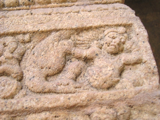 ஸ்ரீநிவாஸநல்லூர் குரங்கநாதர் ஆலயத்தில் முதல் வலத்தில் நீங்கள் காணவேண்டியவற்றை சென்ற இதழில் பார்த்தோம். இப்பொழுது இரண்டாம் மற்றும் மூன்றாம் வலங்களில் காணவேண்டியவற்றைப் பற்றிப் பார்ப்போம். சென்ற இதழ்களில் நான் குறிப்பிட்டிருந்த யாளிவரிகளை இரண்டாம் வலத்தில் நன்றாகப் பார்த்துக்கொண்டு வாருங்கள். முதலில் பார்ப்பதற்கு வரிசையாய் அமைந்திருக்கும் யாளிகள் ஒன்று போல் இருந்தாலும், சற்று உன்னிப்பாக கவனித்தால் ஒவ்வொரு யாளியும் வித்தியாசமானது என்று புலப்படும். ஒவ்வொரு திருப்பத்திலும் இருக்கும் யாளிகளின் வாயைப் பிளந்தபடி கையில் வாளும் கேடையமும் ஏந்திய வீரர்கள் வீரத்துடன் போரிடுவதை அத்தனை அழகாய் அமைத்திருக்கின்றனர் நமது சோழ சிற்பிகள். வீரத்துடன் போரிடும் பொழுது கூட புன்சிரிப்புடன் விளங்கும் அவர்களைக் கண்டால், நமது முன்னோர்கள் எத்தனை வீரம் மிக்கவர்களாய் இருந்திருப்பார்கள் என்பது விளங்கும்.
