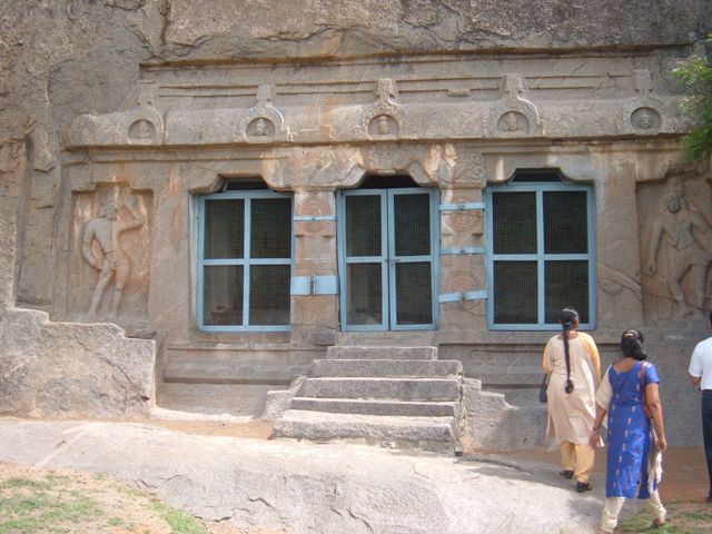 பல்லவ நாட்டின் ஒரு பகுதியைச் சுற்றிப்பார்த்துவிட்டு வருவது என முடிவு செய்து நமது நண்பர்களுடன், சென்னையில் இருந்து திண்டிவனத்தை நோக்கி காலை சுமார் 7.00 மணியளவில் புறப்பட்டோம். 8.30 மணியளவில் வயிற்றில் உள்ள பசி அசுரன் தனது வேலையை ஆரம்பிக்க, முதலில் அவனை அடக்கும் பொருட்டு அச்சிரப்பாக்கத்தில் உள்ள கணேஷ்பவனில் காலைச்சிற்றுண்டியை முடித்துக்கொண்டோம். சற்று வித்தியாசமாகக் கட்டுமானக் கோவில்களுக்கு செல்லாமல் குடைவரை கோவில்களை சென்று பார்க்க விரும்பினோம். குடைவரைக்கோவில்கள் என்றால் எனது நினைவிற்கு வருபவர்கள் பல்லவர்களே. பல்லவர்களில் மகேந்திரவர்மபல்லவனே சுமார் 11 இடங்களில் மலைகளை குடைந்து கோவில்களை அமைத்துள்ளார். இவற்றில் மாமண்டூர், மகேந்திரவாடி, சிங்கவரம் ஆகிய இடங்களில் விஷ்ணு கோவில்களும், பல்லாவரம், சீயமங்கலம், தளவானூர், திருக்கழுக்குன்றம், திருச்சிராப்பள்ளி ஆகிய இடங்களில் சிவன் கோவில்களும், மண்டகப்பட்டில் மும்மூர்த்தி கோவிலும் குடையப்பட்டன. முதலில் சத்ருமல்லேஸ்வராலயம் (சிவன் கோவில்) செல்வது என முடிவாகி திண்டிவனத்தை அடைவதற்க்கு சற்று முன்னரே வலதுபுறத்தில் செஞ்சியை நோக்கி செல்லும் பாதையில் வாகனத்தை திருப்பச்சொன்னோம். அப்படியே வழியில் கொறிப்பதற்கு கொஞ்சம் பழங்களை வாங்கிக்கொண்டோம். கொறிப்பதற்கு என்று அப்பொழுது வாங்கிய கனிகளே மாலை 4 மணிக்கு மதியஉணவாக (!) அமைந்தது என்பது வேறு கதை. செஞ்சியில் இருந்து விழுப்புரம் செல்லும் வழியில் சற்று தூரம் சென்று, இடது பக்கமாக தளவானூரை நோக்கி பயணமானோம். போகும் வழியனைத்தும் நமது மக்களின் அன்றாட வாழ்கையை விட மேடு பள்ளங்கள் அதிகம். 1. தளவானூர் சத்ருமல்லேஸ்வராலயத்தை தம் பெயரில் உருவாக்கியவர் நரேந்திரனான சத்ருமல்லன். வரலாறு 12-13, பக் - 81. நாம் தளவானூரை நோக்கி உள்ளே செல்லச் செல்ல பசுமையான வயல்வெளிகளும், மலைகளும் (மலை என்பதை விட - மிகப் பெரிய பாறை எனலாம்) நம்மை வரவேற்கின்றன. இந்த வயல்களுக்கு நடுவே தான் நாம் எதிர்ப்பார்த்து வந்த வெறிச்சோடி இருக்கும் சத்ருமல்லேஸ்வராலயம் - சிவன் கோவில் உள்ளது. நாம் வந்த வண்டியை வயல்வெளிகளுக்கு அருகில் உள்ள சாலையில் நிறுத்திவிட்டு கோவிலை நோக்கி வயல்களின் நடுவே நடக்க ஆரம்பித்தோம் (அரை கிலோ மீட்டருக்கு குறையாது இருக்கும்). கோவிலை நெருங்க நெருங்க நமது கண்களுக்கு இந்தியத் தொல்லியல் அளவீட்டுத்துறை (A.S.I.) போட்டுள்ள இரும்பு வேலி கண்களுக்கு தெரிந்தது. அருகில் வந்து பார்த்தால் A.S.I. காவலர் ஒருவரும் இல்லை. உலகத்தையே காக்கும் கடவுளுக்கு காவல் எதற்கு என்று காவலர் நினைத்திருப்பாரோ என்னவோ! (நேர் வழி) விழுப்புரத்தில் இருந்து செஞ்சி செல்லும் வழியில