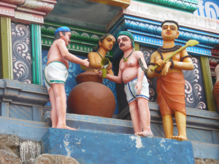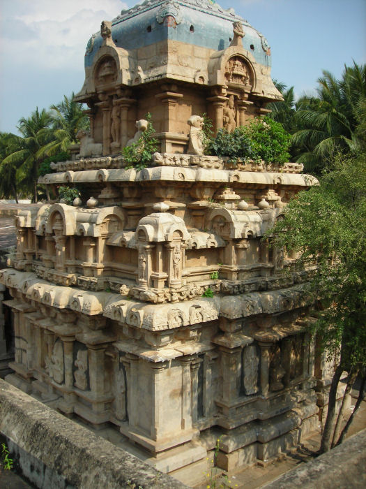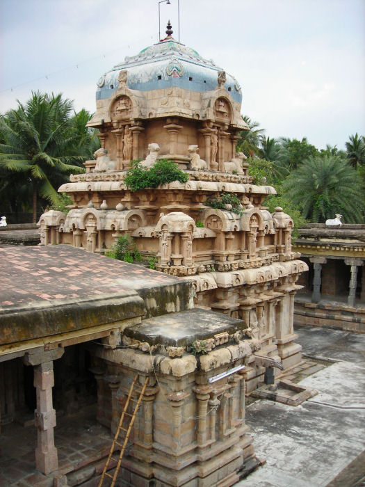 "மண் பொருந்தி வாழ்பவர்க்கும் மாதீர்த்த வேதியர்க்கும் விண்பொருந்து தேவர்க்கும் வீடுபேறாய் நின்றானைப் பண்பொருந்த இசைபாடும் பழனஞ்சேர் அப்பனையென் கண்பொருந்தும் போழ்தத்துங் கைவிட நான் கடவேனோ" என்று "அப்பர் என்ற அரிய மனிதரும்" "வேதமோதி வெண்ணூல்பூண்டு வெள்ளையெரு தேறிப் பூதஞ்சூழப் பொலிய வருவார் புலியினுரிதோலார் நாதா எனவும் நக்கா எனவும் நம்பா என நின்று பாதந்தொழுவார் பாவந்தீர்ப்பார் பழனநகராரே" என்று "ஆளுடைய பிள்ளையாரும்" "திருப்பழனம்" திருக்கோயிலில் பதிகம் அருளிச் செய்துள்ளனர். ![]() திருப்பழனம் கும்பகோணம் திருவையாறு சாலையில் திருவையாறிலிருந்து 3 கி.மீ தொலைவில் காவிரியாற்றின் வடகரையில் 50 வது திருத்தலமாக இயற்கை அழகுடன் கூடிய அழகான கிராமமாக அமைந்துள்ளது. திருவையாற்றிலிருந்து வரும் பொழுதும், குடந்தையிலிருந்து வரும்பொழுதும் ஊருக்குள் நுழைவதற்கு முன் நம்மை சாலையின் இருமருங்கிலும் எழிலுடன் அமைந்த தென்னை மரங்கள் வரவேற்கின்றன.தென்னையும்,வாழையும்,கரும்பும் உள்ள "கழனி"கள் ஊரைச்சுற்றி அமைந்துள்ளன. திருநாவுக்கரசர் காலத்தில் இப்பதி இன்னும் அழகுடன் பொலிந்திருக்க வேண்டும். இது திருவையாற்று ஸப்தஸ்தானத் தலங்களுள் ஒன்று. அப்பூதி அடிகளுடைய அவதாரத் தலமாய திங்களூர் இதற்கு அண்மையில் உள்ளது. இங்கு வழிபட வந்த அப்பர் அடிகள் இத்தலப் பதிகத்தில் "வஞ்சித்தென் வளைகவர்ந்தான் வாரானே யாயிடினும் பஞ்சிக்காற் சிறகன்னம் பரந்தார்க்கும் பழனத்தான் அஞ்சிப்போய்க் கலிமெலிய அழலோம்பும் அப்பூதி குஞ்சிப்பூ வாய்நின்ற சேவடியாய் கோடியையே" என்று அப்பூதிநாயனார் திருப்பெயரை அமைத்து அருளிச்செய்தார்கள். விடந்தீர்த்த பதிகமாகிய "ஒன்று கொலாம்" என்ற பதிக நிகழ்ச்சிக்கு இடமானதலம் இது. ![]() இறைவன் பெயர் ஆபத்சகாயர். அம்மையின் பெயர் பெரிய நாயகி. திங்களூர்-அப்பூதிநாயனார்-அப்பர் அடிகள் என்றவுடன் "திருநாவுக்கரசர் தண்ணீர் பந்தல்" ஞாபகத்திற்கு வந்தது. எங்காவது கண்ணில் படுகிறதாஎன்று துழாவியதில் நுழைவாயில் கோபுரத்தில் சுதைச்சிற்பமாக "திருநாவுக்கரசர் தண்ணீர் பந்தலை" கண்டு களிப்புற்றோம் இனி இக்கோயிலின் அமைப்பைக் காண்போம். இக்கோயிலின் உள்ளே நுழைந்து ஆபத்சகாயரை தரிசித்து ஒரு சுற்று வலம் வரலாம் என்று எண்ணி மகா மண்டபத்திலிருந்து வெளியேறி ஒரு சுற்று வலம் வரும் போது நாம் காணும் காட்சி நம்மை அசர வைக்கும். இவ்வளவு அழகான திருக்கோயில் இன்னும் தொல்லியல் துறையின் கண்களில் படாமல் போனது நம் அனைவரின் துரதிஷ்டமே என்று எண்ணிக்கொண்டோம். நல்ல நிலையில் உள்ள திருக்கோயில், பராமரிப்புக் குறைவினால் ஆங்காங்கே செடிகள் முளைத்து கோயிலின் ஸ்திரத்தன்மைக்கு ஊற