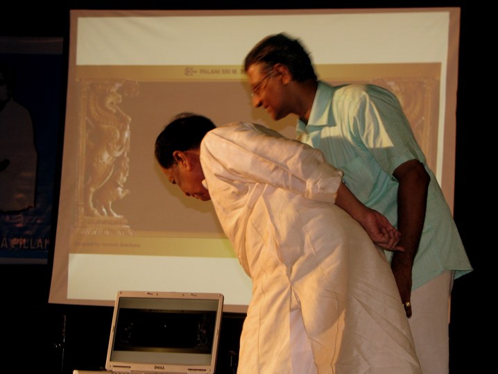 ![]() 'பழநி', 'சுப்புடு', 'பிள்ளைவாள்', 'சுப்ரமணியம் பிள்ளை', 'வாத்தியார்', 'பழனி அண்ணா', 'பழநி சார்' என்றெல்லாம் நூற்றாண்டுவிழா நாயகரை விளித்தோர் குழுமியிருந்த அரங்கில் ரசிகர் கூட்டம் அலை மோதவில்லை எனினும், வெயிலின் கடுமையைப் பொருட்படுத்தாது 3.30 மணிக்கே ரசிகர்களும், கலைஞர்களும் கணிசமான அளவில் குழுமியிருந்தனர். வந்தோரின் கவனத்தை முழவிசை மாமேதை ஸ்ரீ. பழநி சுப்ரமணிய பிள்ளையின் அலங்கரிக்கப்பட்ட புகைப்படம் கவர்ந்தது. நெடிய உருவமும், படிய வாரப்பட்ட தலை முடியும், ஜொலிக்கும் கடுக்கனும், நெற்றியை அலங்கரித்த ஜவ்வாதுப் பொட்டும், தென்றலின் தீண்டலையும், சூறாவளியின் சீற்றத்தையும் அநாயாசமாக வெளிப்படுத்திய மந்திரக் கரங்களும், அக்கரங்களில் தென்பட்ட நீண்ட விரல்களும், அங்கு வந்த அனைவரையும் தன் அருகில் ஈர்த்தன. அதற்கு அடுத்தபடியாக அனைவரையும் கவர்ந்தது அங்கு ஒலித்த இனிய நாதஸ்வர இசை. சேலையூர் சண்முகம் - ரகுராமன் குழுவினரின் ஒரு மணி நேர இசை நிகழ்ச்சி உருக்கமாக அமைந்து அன்றைய விழாவை இனிதே தொடங்கி வைத்தது. அதன்பின் பழநி சுப்ரமணிய பிள்ளை வாசித்த நான்கு உருப்படிகள், அவரது சீடர் காளிதாஸின் அறிமுகத்திற்குப் பின் அரங்கை நிறைத்தன. ![]() நாரத கான சபை போன்ற புகழ் பெற்ற, பாரம்பரியம் மிக்க சபையின் ஒலிபரப்பு சாதனங்கள் இத்தனை சாதாரணமாக இருக்குமா என்று ஆச்சரியப்படும் வகையிலேயே மினிஹாலின் ஒலி அமைப்பு இருந்தது. அத்தனை குறைபாடுகளையும் மீறி ரசிகர்கள் அனைவரும் மகிழ்ந்ததே பழநி சுப்ரமணியம் பிள்ளையின் வாசிப்பின் தனிச் சிறப்பாகும். வழக்கமாய்க் கச்சேரிக்கு வரும் கூட்டம், பாடகர் பாடும்போதெல்லாம் கர்ம சிரத்தையாய்க் கேட்பது போல பாவனை செய்துவிட்டு, தனி ஆவர்த்தனம் தொடங்கிய அடுத்த வினாடியே, ஏதோ இமாலய சாதனையை நிகழ்த்தினாற்போல சோம்பல் முறித்துக் கொண்டு காண்டீனை நோக்கிப் படையெடுக்கும். அன்று வந்திருந்த கூட்டமோ, அரை மணி நேரத்துக்கும் மேலாக ஒலித்த இரண்டு தனி ஆவர்த்தனங்களைக் கூர்ந்து கவனித்து ரசித்தது. இக்காட்சியை எட்டாவது உலக அதிசயங்களுள் சேர்க்கலாமா என்று கூடச் சிலர் பேசிக்கொண்டனர். முதலாவதாக ஒலித்த ஆதிதாளத் தனி ஆவர்த்தனத்தை, தனது அறுபது வருட ரசிகானுபவத்தில் முதல் இடத்தைப் பிடித்த தனியாக வர்ணித்தார் கே.எஸ்.காளிதாஸ். ![]() மிகவும் கடினமான கணக்கு வழக்குகளை மிருதங்க வித்வான் வாசிக்கும்போது, உன்னிப்பாகக் கவனித்துத் தாளம் போட்டுக் கேட்கும் ரசிகரின் மனதில், ஒருவித பரபரப்பு ஏற்பட்டு உணர்ச்சிவசப்படக்கூடிய நிலை ஏற்படுவது சகஜம். பலசமயம், கணக்கு வழக்குகளில் கவனத்தைச் செலுத்துவோமெனில், வாசிப்பில் பொதிந்திருக்கும் 'மனதைத் தொடும்' ரம்யமான அம்சங