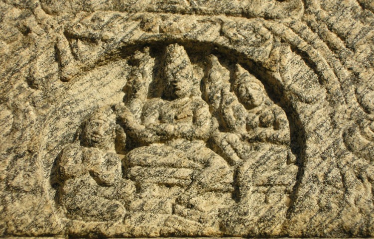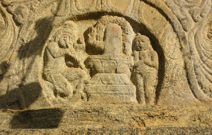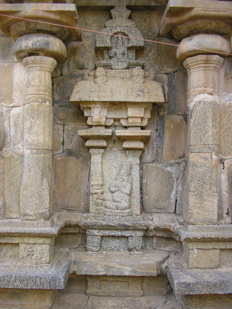 (சென்ற இதழின் தொடர்ச்சி...) உதிரிச்சிற்பங்கள் 1. சேத்திரபாலர் முகமண்டபத்தின் கிழக்கில் உள்ள வாயிலின் வலப்புறத்தே அழகுடன் காட்சியளிக்கும் சேத்திரபாலரின் வலது முன்கரத்தில் சூலம். வலது பின்கரங்களில் மேலிருந்து கீழாக டமருகம், அம்பு, ஓங்கிய வாள் உள்ளன. இடது முன்கரத்தில் மண்டையோடு, பின்கரங்களில் மேலிருந்து கீழாக பாம்பு, வில், பாசம் உள்ளன. சுடர்முடியைத் தலையலங்காரமாய்ப் பெற்று நெற்றிக்கண் கொண்டு விளங்கும் சேத்திரபாலரின் செவிகளில் பத்ரகுண்டலம். உதரபந்தம் அணிந்தும் மண்டை ஓட்டு மாலையை முப்புரிநூலாகக் கொண்டும் இடையில் பாம்பை இடைக்கட்டாய்ப் பெற்றும் நிர்வாணியாய்க் காட்சியளிக்கும் சேத்திரபாலர் உர்ஸ் சூத்திரமும் பெற்றிருக்கிறார். இவரின் இடது முன்கரம் இடைக்கட்டாக உள்ள பாம்பின் தலைமீது தாங்குதலாய் அமைக்கப்பெற்றுள்ளது. கைவளை, தோள்வளை, கழுத்தில் கண்டிகை, சரப்பளி அணிந்துள்ள சேத்திரபாலரின் முகத்தில் கோரைப்பற்களை மீறி வெளிப்படும் புன்னகை இச்சிற்பத்தைப் படைத்த சோழர்காலச் சிற்பியின் கைவண்ணத்தை வெளிக்காட்டுமாறு அமைந்துள்ளது. ![]() 2. சூரியன் முகமண்டபத்திற்குள் உள்ள சூரியனின் சிற்பம் சுமார் நான்கு அடி உயரம் உள்ளது. இரு கரங்களிலும் தாமரை மலர்களை ஏந்தியுள்ள இவர் கரண்ட மகுடம் அணிந்து செவிகளில் மகர குண்டலங்களைப் பெற்றிருக்கிறார். கைவளை, தோள்வளை, கழுத்தில் சரப்பளி, கால்களில் தாள்செறி அணிந்துள்ள இவரின் முப்புரிநூல் உபவீதமாய் மார்பில் இறங்குகிறது. இச்சிலை சோழர் காலத்திய படைப்பாகும். ![]() 3. பெருமாள் நெற்றிப்பட்டம் சூடி கிரீட மகுடத்தைத் தலையலங்காரமாய்க் கொண்டு விளங்கும் பெருமாள் கருவறையை ஒட்டிய முகமண்டபத்தின் தென்புறம் காட்சியளிக்கிறார். கைவளை, தோள்வளை, ஸ்கந்தமாலை அணிந்துள்ள இவரின் செவிகளில் மகர குண்டலங்கள். பின்கைகளில் சங்கு சக்கரம் ஏந்தி இருக்கும் இவரின் வலது முன்கரம் காக்கும் முத்திரையிலும் இடது முன்கரம் கடி ஹஸ்தத்திலும் உள்ளன. பட்டாடை அணிந்துள்ள இவரின் முப்புரிநூல் உபவீதமாய் மார்பிலிருந்து கீழே இறங்குகிறது. 4. இறைவி இறைவனின் திருமுன்னின் முன்பு வடக்குப்புறத்தில் தெற்கு முகமாய் சௌந்திரநாயகி அம்மன் என்ற திருநாமத்துடன் காட்சியளிக்கும் இறைவியின் தலையலங்காரம் சடைமகுடம் ஆகும். நெற்றியில் நெற்றிப்பட்டம் சூடி, கைவளை, தோள்வளை, ஸ்கந்தமாலை அணிந்துள்ள இவர் கழுத்தில் செவிகளில் மகரமும் அணிந்து காட்சியளிக்கிறார். இறைவியின் முன்கரங்கள் அபயமும் வரதமும் காட்ட பின்கரங்கள் அக்கமாலையுடன் கூடிய மலர்ந்த மலரும், தாமரை மொட்டும் ஏந்தியுள்ளன. பட்டாடை அணிந்த இவரின் இடைக்கட்டு முடிச்சுகள் பக்கவாட்டில் இருபக்