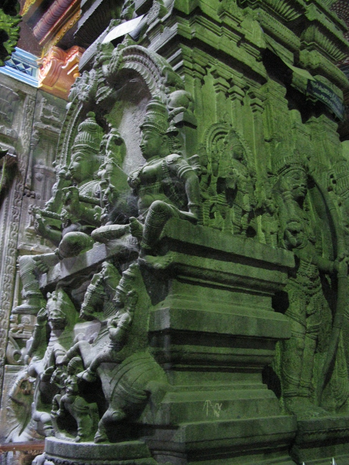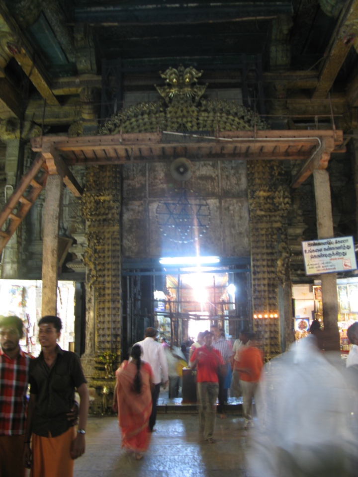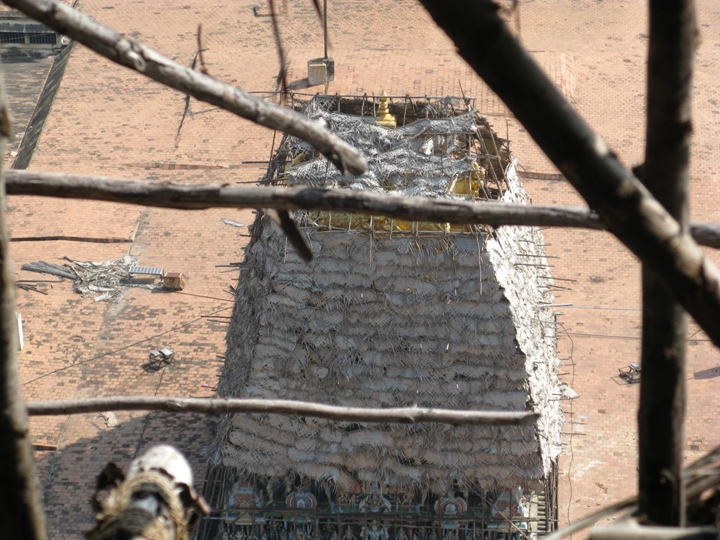 இடம் : டோக்கியோ நாள் : 01 - செப்டம்பர் - 2009 அன்புள்ள திரு. வேலாயுதம் அவர்களுக்கு, வணக்கம். இந்தக் கழுகுமலைப் பயணத்தில் தாங்களும் கலந்து கொள்வீர்கள் என எதிர்பார்த்து, தங்களின் சொந்த அலுவல் காரணமாகக் கலந்துகொள்ள இயலாமல் போனதற்காக, பயணத்தின் கடைசிநாள் நாங்கள் கண்டு வியந்த மதுரை மீனாட்சியம்மன் ஆலயத்தின் மேற்குக் கோபுரம் பற்றிய விவரங்கள் இக்கடிதம் வாயிலாகத் தங்களை வந்தடைகின்றன. டிசம்பர் 26 ஆம் தேதி அன்று காலை மதுரையில் நாங்கள் தங்கியிருந்த விடுதியைவிட்டு நீங்கி, மீனாட்சியம்மன் கோயிலை அடைந்தோம். நாங்கள் அங்குச் சென்று சேரும் முன்னரே, அங்கு எங்களுக்காகக் காத்திருக்கும் இரண்டு நண்பர்களைப் பற்றி டாக்டர் அறிமுகக்குறிப்பு கொடுத்தார். இந்து சமய அறநிலையத்துறையில் பணிபுரிபவர் ஒருவர். புலவர் பட்டம் பெற்றவர். புத்திக்கூர்மையுடன் கூடிய திறமைசாலி விஜயரகுநாதன் என்ற பெயருடைய அந்நண்பர். இன்னொருவர், தமிழக அரசின் 'அனைவரும் அர்ச்சகர் ஆகலாம்' திட்டத்தின்கீழ் மதுரையில் துவங்கப்பட்ட பயிற்சிக் கல்லூரியின் முதல்வர். முனைவர். குமரேசன் என்ற பெயருடைய இவர் தேவாரப் பாடல்களில் முனைவர் பட்டம் பெற்றவர். இருவருமே பழகுவதற்கு இனிமையானவர்கள். நாங்கள் கோயிலை அடைந்ததும் டாக்டர் அறிமுகப்படுத்தினார். அப்போதுதான் முதல்முறை சந்திக்கிறோம் என்ற உணர்வே இல்லாமல், நெடுநாட்கள் பழகிய நண்பர்கள் மீண்டும் சந்திப்பது போன்ற உணர்வே மேலோங்கி இருந்தது. கடைவீதியிலிருந்து கோயிலை நோக்கி நடந்து கொண்டிருந்த எங்களை, திடீரென்று ஒரு சாமி படங்கள் விற்கும் ஒரு கடைக்குள் நுழையச் சொன்னார்கள் இருவரும். நாங்களும் எதற்காகவென்றே புரியாமல் உள்ளே நுழைந்து, தென்பட்ட மாடிப்படிகளின்மீது ஏறினோம். ஏறிய பிறகுதான் தெரிந்தது, மேற்குக் கோபுரத்தின் இரண்டாம் தளத்தில் நின்று கொண்டிருக்கிறோம் என்று. ஆனால் உள்ளமைப்பைக் கண்டால், ஏதோ பல காலமாகப் பயன்படுத்தாமல் விட்டிருந்த ஓர் அரண்மனையின் ஏதோ ஓர் அறையில் இருப்பது போன்ற உணர்வு ஏற்பட்டது. மரத்தாலான தூண்களில் செதுக்கப்பட்டிருந்த விலங்குச் சிற்பங்கள், பின்னர் மேலே சென்றபோது சுவர்களைக் குறுக்கக் கையாண்டிருந்த உத்தி போன்றவற்றைக் கீழேயுள்ள படங்களில் காட்டியிருக்கிறேன். வழக்கம்போலவே, 154 அடி உயரக் கோபுரத்தின் உச்சியில் ஏறியது மறக்க முடியாத அனுபவமாக அமைந்தது. தஞ்சை இராஜராஜீசுவரத்தின் இராஜராஜன் திருவாயிலின்மீது ஏறியபோது சோழர் கட்டடக்கலை மீது ஏற்பட்ட பிரமிப்பு இங்கும் ஏற்பட்டது. பாண்டியர்களும் கட்டடக்கலையில் பல்வேறு சாதனைகளைப் புரிந்தவர்கள்தாம் என்ற எண்ணம் ஏற்பட்டது. ![]() ![]() ![]() ![]() ![]() ![]() ![]() ![]() ![]() ![]() ![]() ![]() ![]() ![]() ![]() ![]() ![]() ![]() ![]() !
