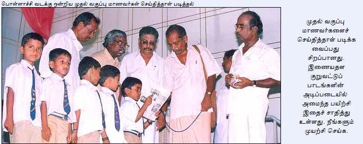 'இறந்த மாந்தன் திரும்பவும் தாயின் கருப்பையில் பிறக்கிறான் என்ற நம்பிக்கையின் அடிப்படையில், அவனது மறுபிறவிக்குத் தேவைப்படும் உடம்பிற்கான எலும்புகளையும், அவன் பயன்படுத்திய கருவிகள், அணிகலன்கள் போன்றவற்றையும் மண்பாண்டங்களில் வைத்துப் புதைக்க வேண்டும் என்று சங்ககால மாந்த சமுதாயம் கருதியது.' இப்படி ஆரம்பிக்கிறது அந்தக் கட்டுரை. இந்தக் கட்டுரையை எங்குப் படித்தேன் என்று கூறுவதற்கு முன்னர், தமிழ் வளர்க்கும் ஒரு தமிழரைப் பற்றிச் சிறு விளக்கம். பொள்ளாச்சியைச் சேர்ந்த திரு. நசன் என்பவரைப் பற்றிச் சிலர் கேள்விப்பட்டிருக்கலாம். தமிழ்நாட்டின் கல்விநிலையைப் பற்றி எல்லோருக்குமே தெரிந்திருக்கும். தமிழில் எழுதப் படிக்கத் தெரியாமலேயே பட்டமேற்படிப்பு வரை படித்து முடித்து விடக்கூடிய கல்விமுறையைக் கொண்ட 'பெருமை வாய்ந்த' மாநிலங்களில் முதலிடம் வகிக்கிறது. மடிக்குழைப் (Matriculation) பள்ளிகள் புற்றீசல் போலப் பெருகி, தமிழில் பேசினால் அபராதம் போன்ற அபவாதங்களை ஒரு காலகட்டத்தில் பரப்பிக் கொண்டிருந்தன. குழலையும் யாழையும் ஒத்த தமிழைவிட, ஆங்கிலப் பியானோவில் தங்கள் மழலைச்சொல் கேட்கவிரும்பி, இம்மடிக்குழைப் பள்ளிகளில் சேர்க்க வரிசையில் நின்று கொண்டிருந்த காலம் அது. ஆங்கில மோகத்தைக் காசாக்கினாலும், இவ்வலையில் சிக்காத பெற்றோர்களை ஈர்க்க இன்னும் சில தூண்டில்களும் தேவைப்பட்டன இப்பள்ளிகளுக்கு. பெரிய வகுப்புகளில் பயிலும் பாடங்களைச் சிறு வகுப்புகளிலேயே அறிமுகப்படுத்துதல், கராத்தே, நாட்டியம் போன்றவற்றைப் பயிற்றுவித்தல் போன்ற தூண்டில்களால் ஈர்த்து வந்தன. இந்த நிலையில், அரசுப் பாடத்திட்டத்தை வடிவமைப்பதற்காகவும், ஆய்வு செய்வதற்காகவும், அரசுப் பணியில், தொடர்ச்சியாகச் சென்னை சென்று கொண்டிருந்த திரு. நசன் என்பவரால் பொள்ளாச்சியில் சூளேசுவரன்பட்டி என்னும் ஊரில் தொடங்கப்பட்ட பள்ளிதான் தாய்த்தமிழ்த் தொடப்பப்பள்ளி. பொள்ளாச்சியைத் தாண்டி. சீஷெல்ஸ் மற்றும் ஜெர்மனியின் எசன் நகரங்களில் இத்தாய்த்தமிழ்த் தொடக்கப்பள்ளி தன் கிளைகளை விரித்திருக்கிறது. 'தமிழ் கற்றுக் கொள்ள ஊக்குவித்து தமிழில் செய்தித்தாள் படிக்கும் வரை உதவி செய்தால் போதும். அவர்களே பிறகு தேடி படித்துக் கொள்வார்கள். இதற்கான பாடங்களை அன்பாக, இயல்பாக, நெருக்குதலில்லாமல் சொல்லிக் கொடுத்தால் மிகப் பெரிய வெற்றியைக் காண முடியும். தமிழ் படிக்கச் சொல்லிக் கொடுப்பது என்பது தமிழ் மாணவர்களுக்குக் கண் கொடுப்பது போன்றது. இயங்க நினைப்பவர்களுக்குத் தமிழம் வலை உதவக் காத்து இருக்கிறது' என்கிறார் தமிழம் டாட் நெட் என்னும் வலைப்பக்கத்தை நிர்வகித்து வரும் திரு. நசன் அ