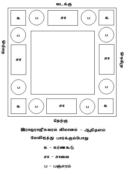 ஒவ்வொரு குடப்பஞ்சரத்துக்கு இருபுறமும் சில ஆடற்சிற்பங்களும் கின்னரர்கள் பறப்பது போன்ற சிற்பங்களும் இருக்கின்றன. வாயிற்காவலர்கள் உள்ள கோட்டங்கள் நீங்கலாக மற்ற எல்லாக் கோட்டங்களிலும் மகரதோரணங்கள் இருக்கின்றன. அரைத்தூண்கள் சிலவற்றில் மாலைத்தொங்கல் இல்லை. தூண்களின் முடிவில் வெட்டுப்போதிகைகள் இருக்கின்றன. இது முதலாம் இராஜராஜர் காலத்தில் அறிமுகப்படுத்தப்பட்டது. வெட்டுப்போதிகைகள் உத்தரத்தைத் தாங்குகின்றன. உத்தரத்தின் மேல் வாஜனமும், வாஜனத்தின் மேல் வலபியும், வலபியில் பூதகணங்களும், அவற்றிற்குக் குடை பிடித்தாற்போல் கபோதமும், கபோதத்தின் கண்களாய் நாசிகைகளும், கபோதத்திற்கு மேலுள்ள பூமிதேசத்தில் யாளிவரியும் அழகுற அமைக்கப்பட்டுள்ளன. முதல் தளமும் இதே அமைப்பில் அமைந்துள்ளது. ஆதி தளத்தில் ஓவியங்கள் இருப்பதுபோல் முதல்தளத்தில் நடராஜரே ஆடிக்காட்டும் நாட்டியக் கரணச்சிற்பங்கள் இருக்கின்றன. ![]() விமானத்தின் மொத்த எடையை இந்த இரண்டு இருதளச் சுவர்களும் சமமாகப் பகிர்ந்து கொள்கின்றன. வெகு சில கோயில்களில் மட்டுமே இத்தகைய சாந்தாரநாழி இருப்பது தாங்குதிறனை அதிகரிக்க மட்டுமே. இதே தொழில்நுட்பத்தை அடியொற்றித்தான் கங்கைகொண்டசோழபுரமும் அமைந்துள்ளது. இங்கு விமானம் முழுக்க சதுர வடிவத்திலேயே அமைந்துள்ளது. ஆனால் கங்கைகொண்டசோழபுரத்தில் சதுரமாகத் தொடங்கி எண்பட்டையாக மாறி வட்டமாக முடிகிறது. இதுபோல இன்னும் ஏராளமான செய்திகளைச் சொல்லிக்கொண்டே போகலாம். முழு விமானத்தையும் ஆராய்ந்தால் எண்ணிலடங்காத இன்ப அதிர்ச்சிகளைச் சந்திக்க வேண்டியிருக்கும். இக்கோயிலிலேயே வாழ்நாள் முழுதும் குடியிருந்தாலொழிய முழுமையாக ஆய்வுக்குட்படுத்த இயலாது. இக்கட்டுரையில் சொல்லப்பட்டிருப்பவை 1% கூட இருக்காது. எஞ்சியவற்றை வரும் இதழ்களில் சிறிது சிறிதாகக் காண்போம். this is txt file |