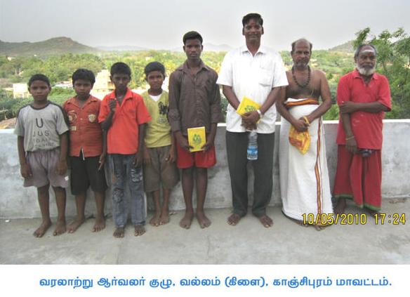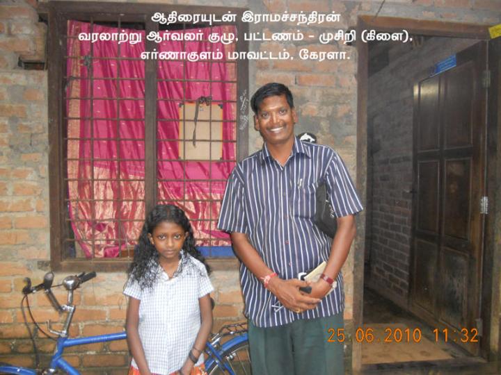 இதைக் கேட்டதும் நாங்கள் அனைவரும் வியப்பின் உச்சிக்கே சென்றோம். வரலாற்றில், அதுவும் குறிப்பாகச் சோழர் வரலாற்றில் ஈடுபாடு கொண்டவர்கள் தலைமேல் வைத்துக் கொண்டாடுவது முதலாம் இராஜராஜரையும் தஞ்சை பெரியகோயிலையும்தான். ஆனால், இவர் இராஜராஜரை விட்டுவிட்டு வித்தியாசமாக இராஜேந்திரரைக் கொண்டாடுகிறாரே என்று ஆச்சரியப்பட்டோம். பின்பு அவரது குழுவினரை அறிமுகப்படுத்தியபோது, இப்படியொரு ஆர்வலர் குழுவைப் பெற வரலாறு என்ன புண்ணியம் செய்ததோ என்று வியந்தோம். அவர்தான் திரு.க.இராமச்சந்திரன், துணை வட்டாட்சியர், திருக்குவளை, நாகப்பட்டினம் மாவட்டம். அவரைப்பற்றிய மற்றும் அவர் உருவாக்கிய வரலாற்று ஆர்வலர்கள் குழுவினரின் அறிமுகம்தான் இக்கட்டுரை. திருச்சிராப்பள்ளி டாக்டர். மா.இராசமாணிக்கனார் வரலாற்றாய்வு மையம் மாடக்கோயில்களைப் பற்றி ஆய்வு செய்துகொண்டிருந்தபோது, 2010ம் ஆண்டின் பிற்பகுதியில், நாகப்பட்டினம் மாவட்டத்துக்குச் செல்லும் வாய்ப்பு ஏற்பட்டது. ஏற்கனவே நண்பர் பால.பத்மநாபன் மூலமாக இராமச்சந்திரனைப் பற்றிக் கேள்விப்பட்டிருந்தாலும், அப்போதுதான் முதல்முறை சந்திக்க நேர்ந்தது. அப்போது அவருக்குக் காலில் சற்று அடிபட்டிருந்தாலும், எங்களுக்காக நாகப்பட்டினம் எல்லையிலேயே காத்திருந்து வரவேற்றார். அதுவே அவரைப்பற்றிய நல்லெண்ணத்தை எங்களிடையே தோற்றுவித்தது. நாங்கள் மட்டுமல்ல. நாகப்பட்டினத்துக்கு வரலாற்றாய்வுக்காக வரும் எல்லா வரலாற்றாய்வாளர்களையும் நல்ல முறையில் வரவேற்று, உபசரித்து, ஆய்வு முடியும்வரை உடனிருந்து தேவையான உதவிகளைச் செய்துதந்து, வழியனுப்பும் வரை தன்னுடைய கடமையாகக் கருதிச் செய்வார் என்று பிற வரலாற்றாய்வாளர்களிடமிருந்து கேள்விப்பட்டபோது, எங்கள் பிரமிப்பு இன்னும் அதிகமாகியது. இரண்டாவது முறையாகக் கடந்த மாதம் நாகப்பட்டினம் செல்ல நேர்ந்தது. வழக்கம்போல் இரண்டு நாட்களும் உடனிருந்து கவனித்துக் கொண்டார். இரண்டாவது நாளின் மதிய உணவைத் திருக்குவளையில் ஏற்பாடு செய்திருந்தார். அப்போதுதான் நாங்கள் பேரின்பப் பெருவெளியில் தள்ளப்பட்டோம். உணவு சுவையாக இருந்ததால் அல்ல. அடுத்து நிகழ்ந்த நிகழ்வுகள் உணவைவிடச் சுவையாக இருந்ததால்தான். சுமார் இருபது ஆண்டுகளுக்கு முன்பெல்லாம் எங்கள் கிராமத்தில், ஏதாவது கார் வந்தாலே போதும், ஒரு சிறுவர் பட்டாளம் பின்னாலேயே ஓடி, யார் வந்திருக்கிறார்கள், எதற்காக வந்திருக்கிறார்கள் என்று ஆராய்ந்து கிராம மக்களுக்குத் தகவல் ஒலிபரப்புச் செய்யும். அன்றும் திருக்குவளை கிராமத்துக்குள் எங்கள் கார் நுழைந்ததுமே ஒரு சிறுவர் பட்டாளம் பின் தொடர ஆரம்பித்தது. அட! பல வருடங்களுக்குப் பி
